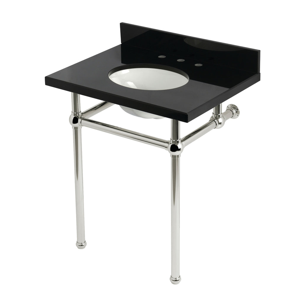 Templeton 30-Inch Black Granite Console Sink with Brass Legs (8-Inch, 3-Hole)