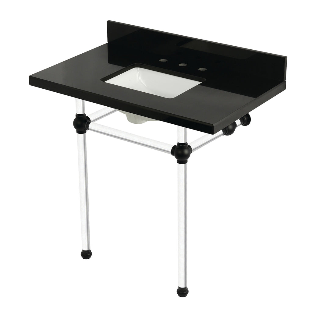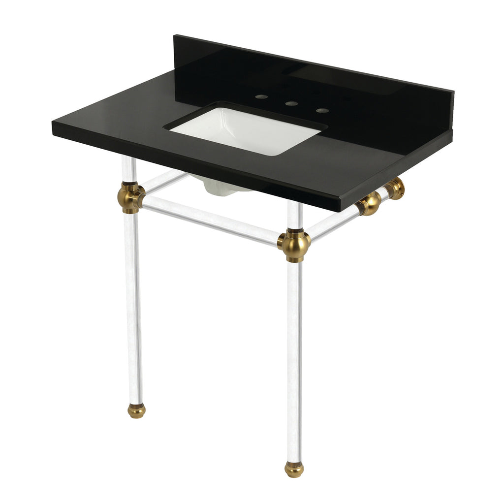Templeton 36-Inch Black Granite Console Sink with Acrylic Legs (8-Inch, 3-Hole)