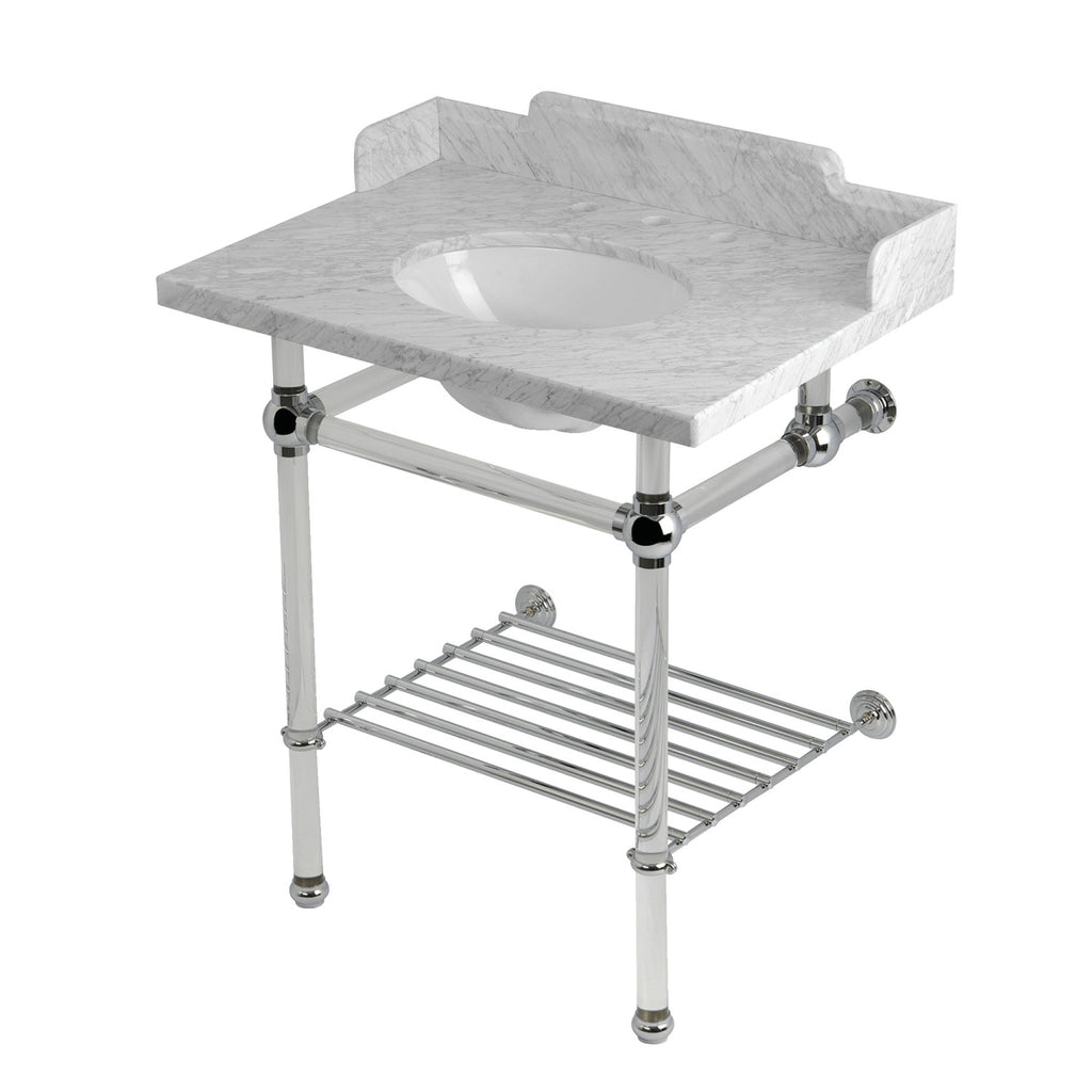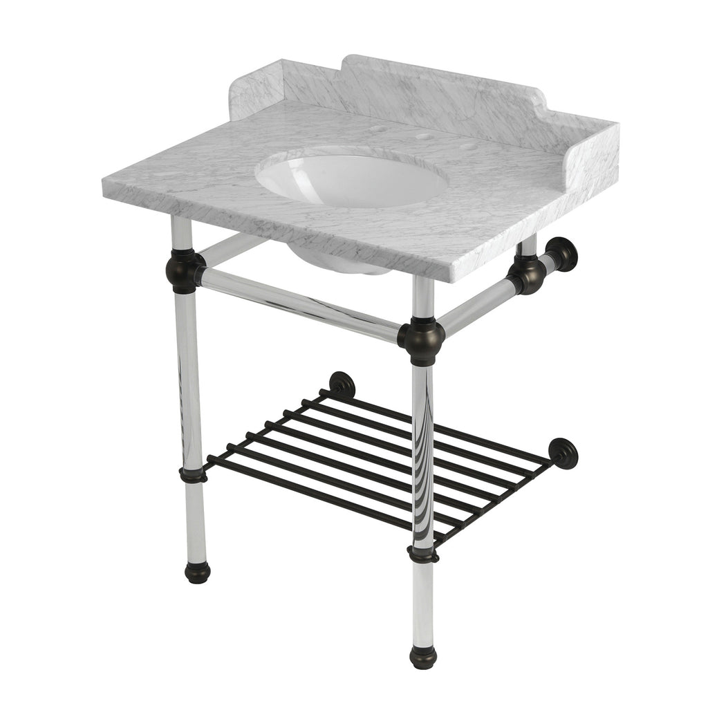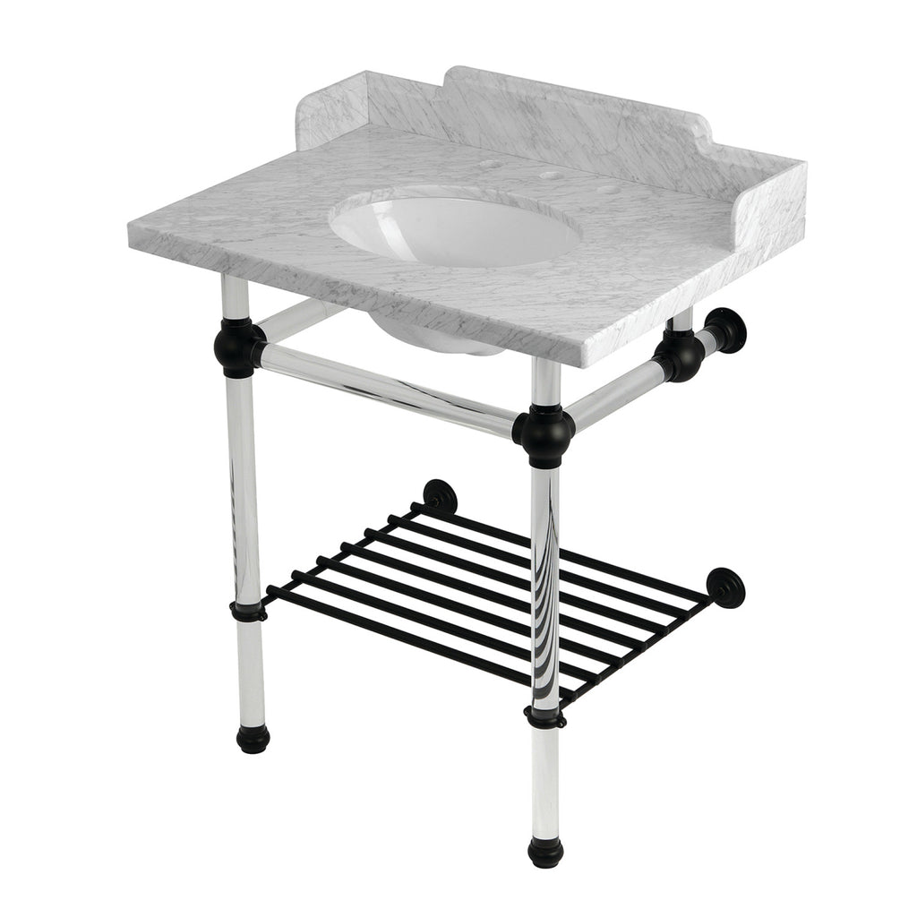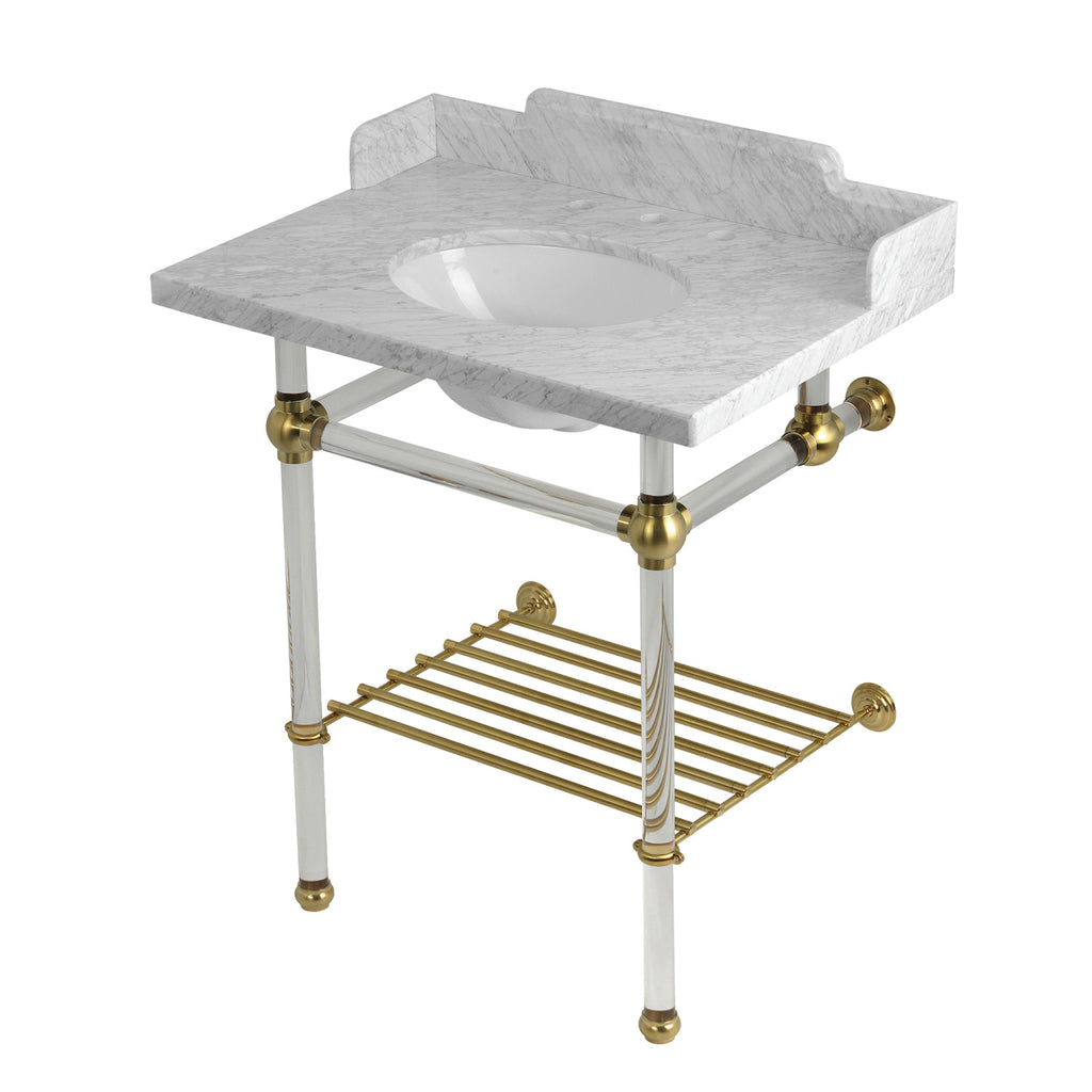 Pemberton 30-Inch Carrara Marble Console Sink with Acrylic Legs and Shelf (8-Inch, 3-Hole)