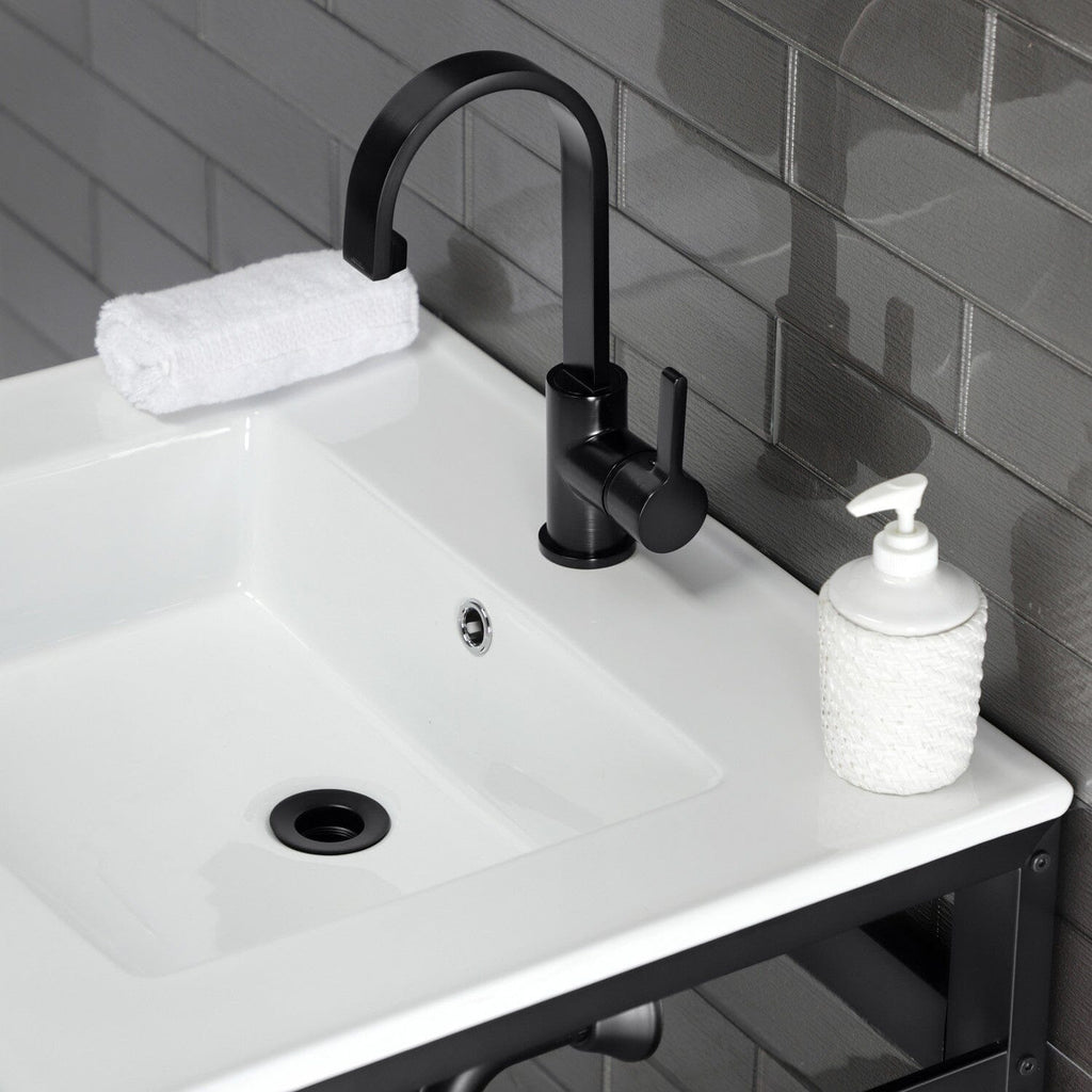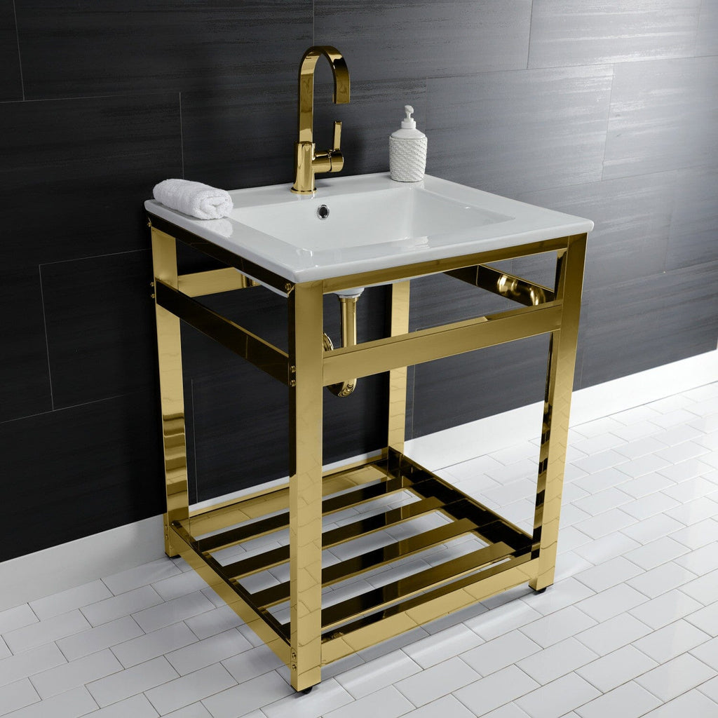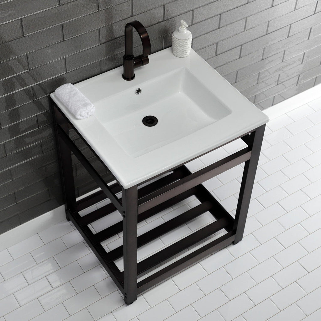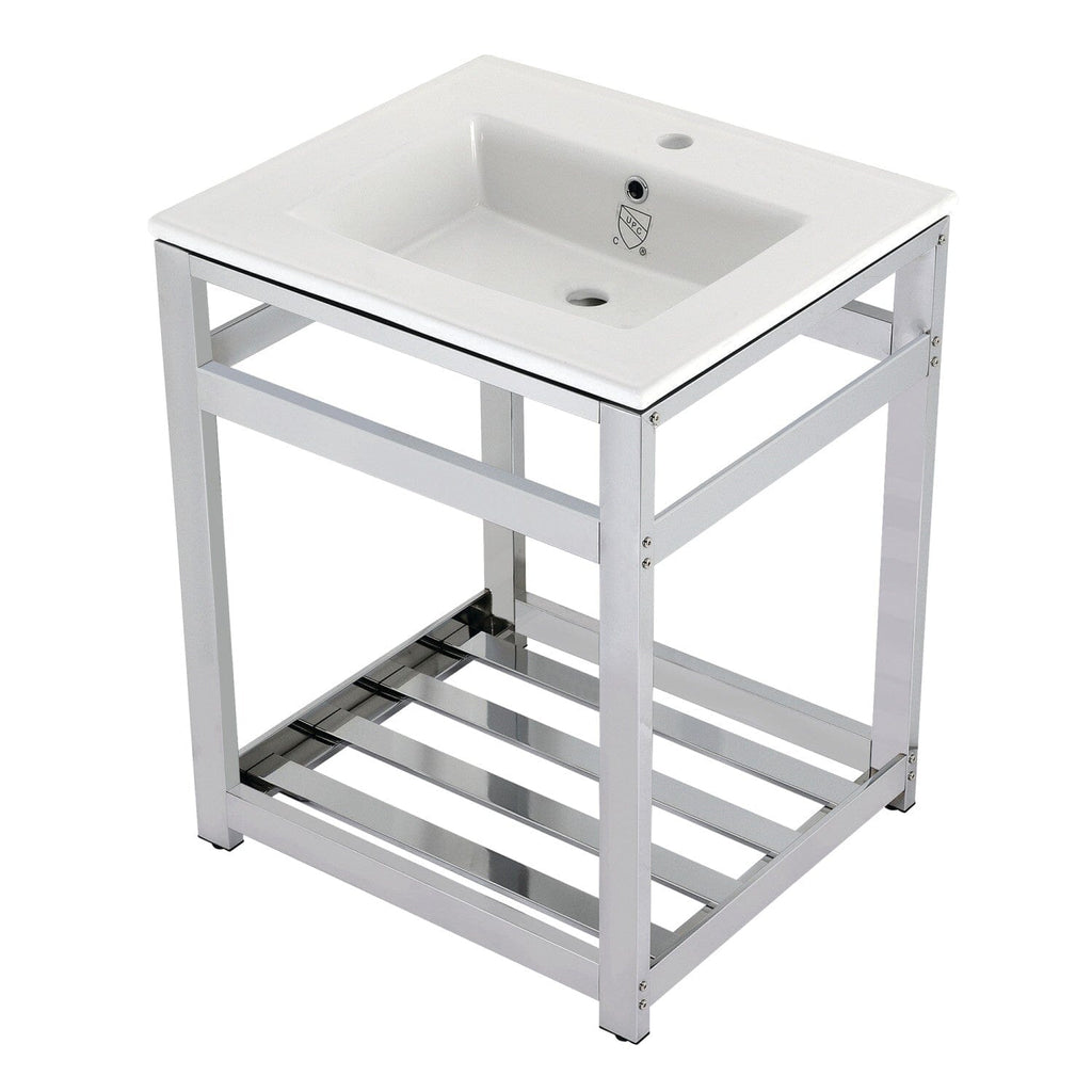 Quadras 25-Inch Ceramic Console Sink with Steel Base and Shelf (1-Hole)