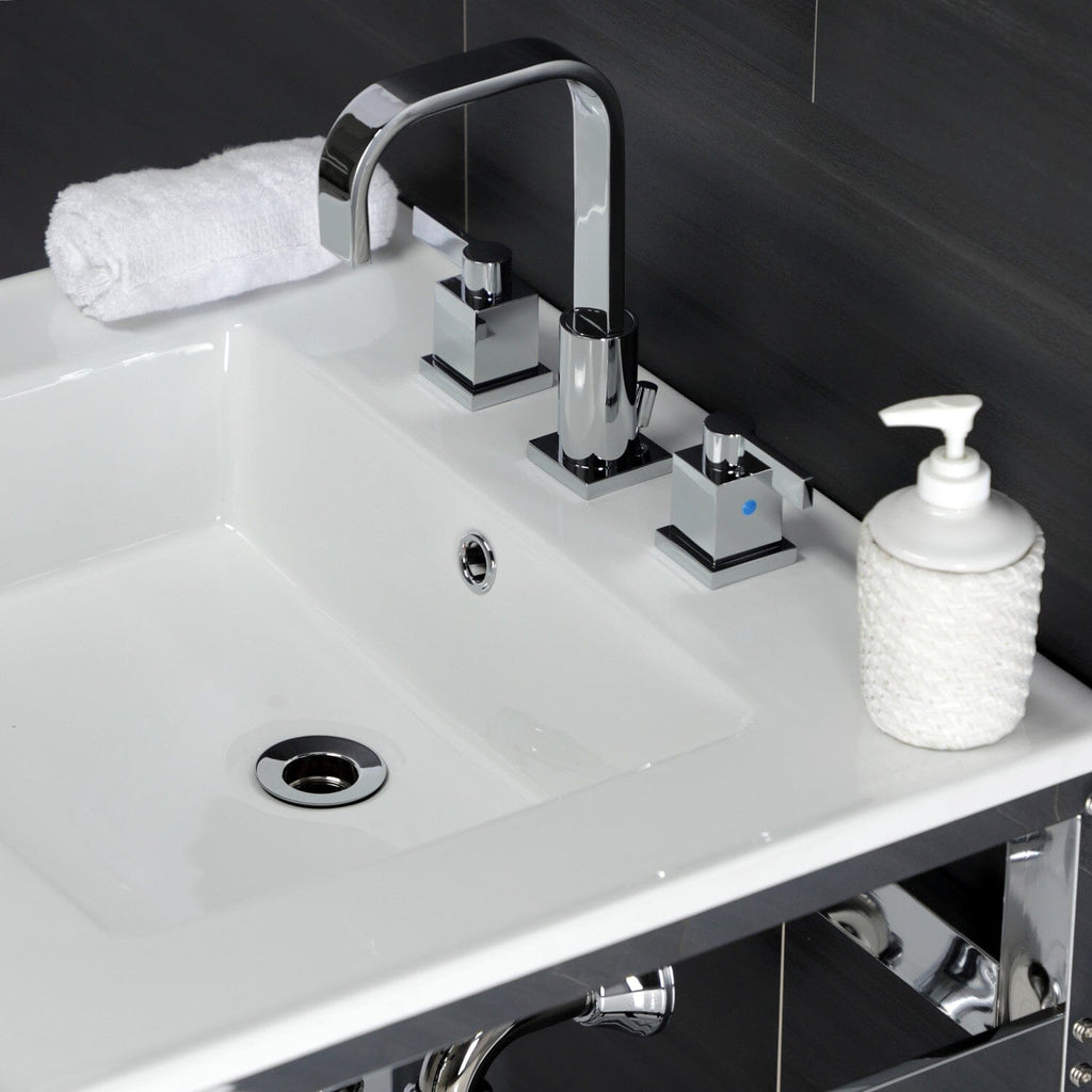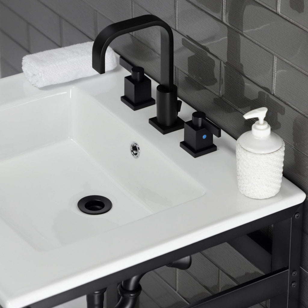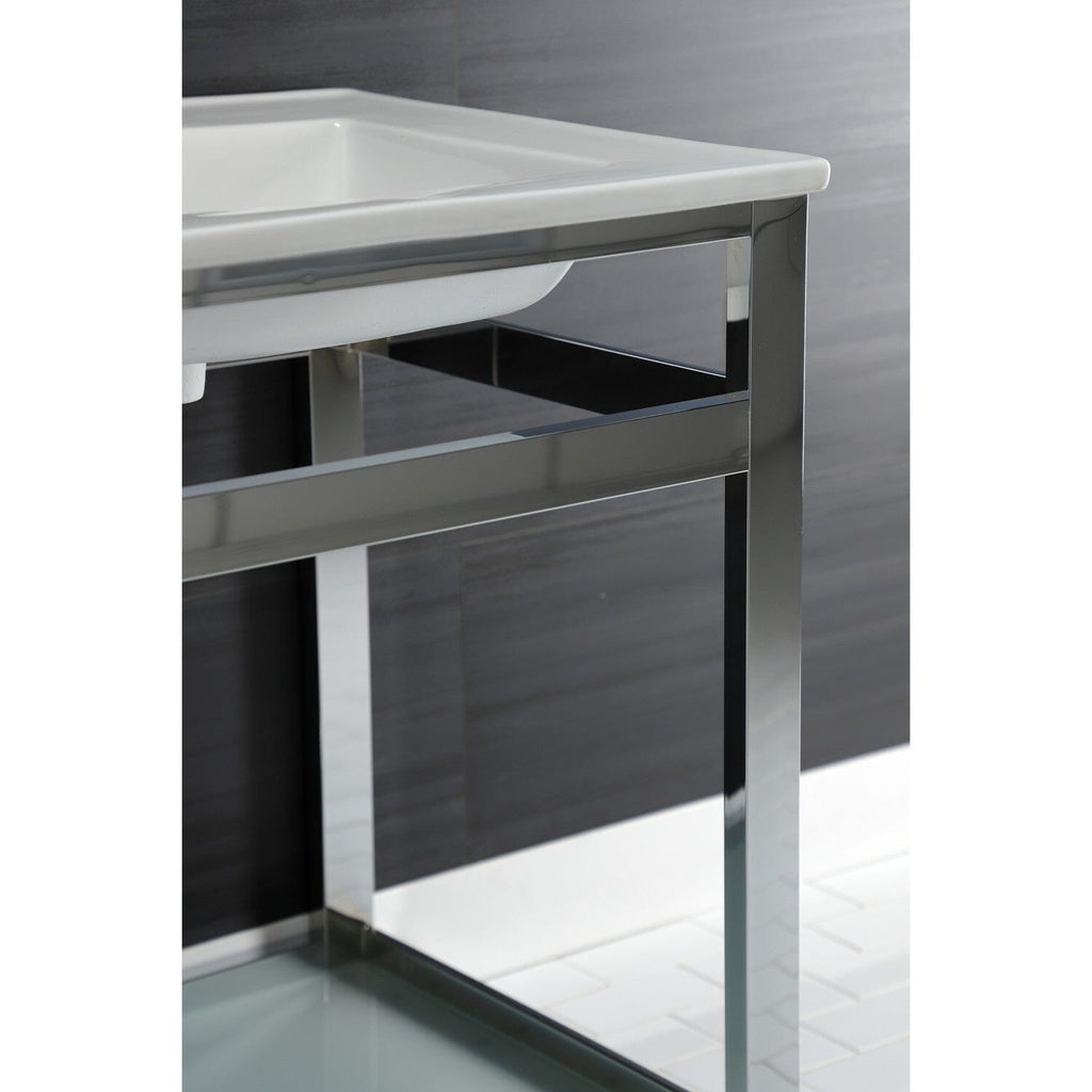 Quadras 25-Inch Ceramic Console Sink with Steel Base and Glass Shelf (8-Inch, 3-Hole)
