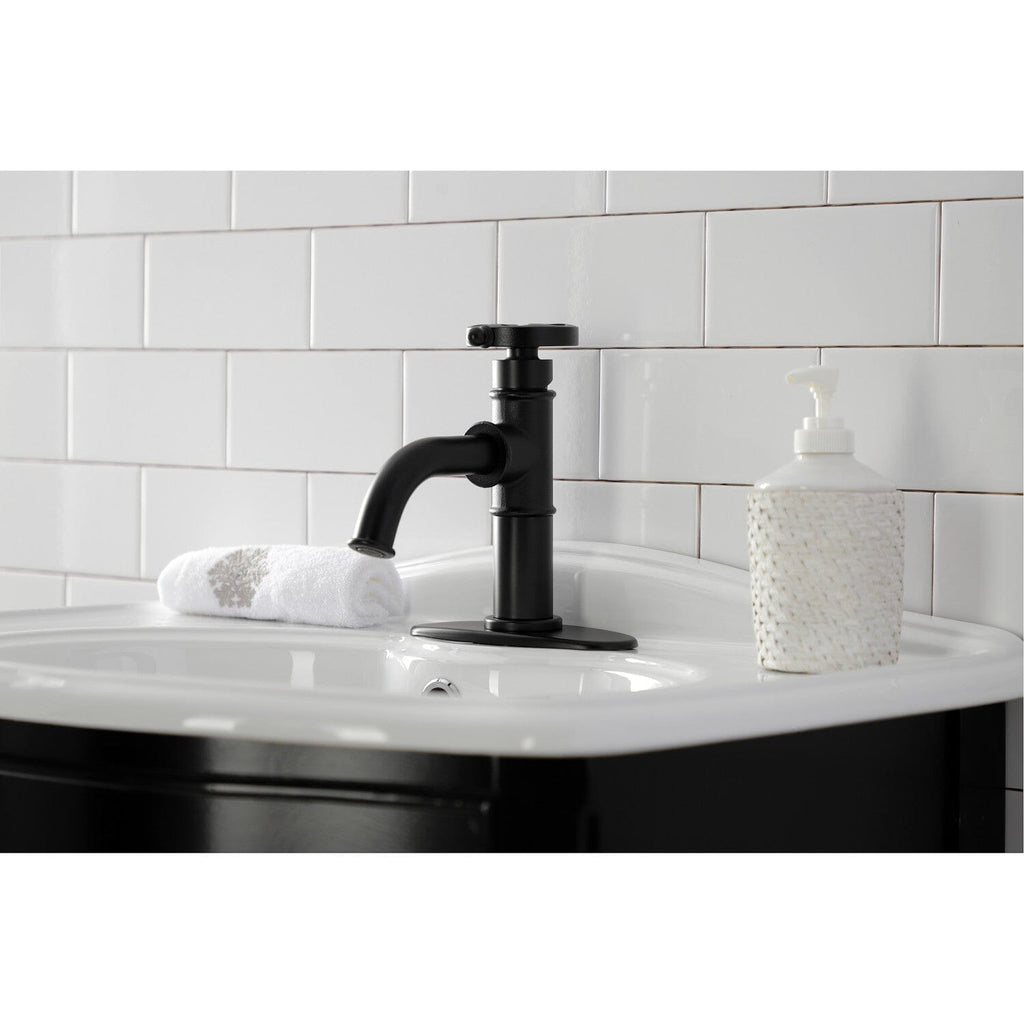 The exquisite design of this faucet tastefully flatters the elegant architecture of traditional homes with its fine detailing. Single-hole bathroom faucets provide a more streamlined look. Also, they will allow your bathroom to appear more spacious with the limited counter space they require. The Belknap single-handle bathroom faucet with push pop-up and its featured sturdy brass construction and premium matte black finish are guaranteed to glamorize your home's traditional ensemble for years to come. A matching finish drain is also included.