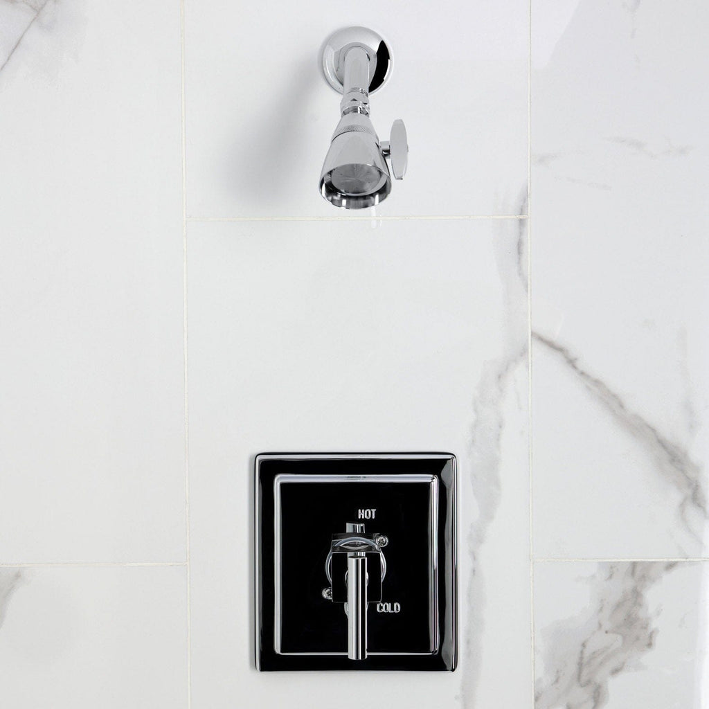 This shower faucet's modern features create a bold and edgy design in your bathroom. Complete with an easy-to-turn lever handle, an optimum bathing experience awaits. Enjoy the sturdy brass construction and premium polished chrome finish for a fixture that will last for years to come. A pressure balanced valve is included for safety and protection against accidental burns.