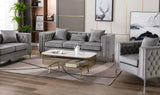 Glam up your living room with the Lorreto Collection! Crafted from fine wood and quality fabrics, this sofa features an abundance of button tufting. The double nail-head trim adds a touch of elegance while the low back adds better lumbar support. Entertain your guests and family members in comfort and style.