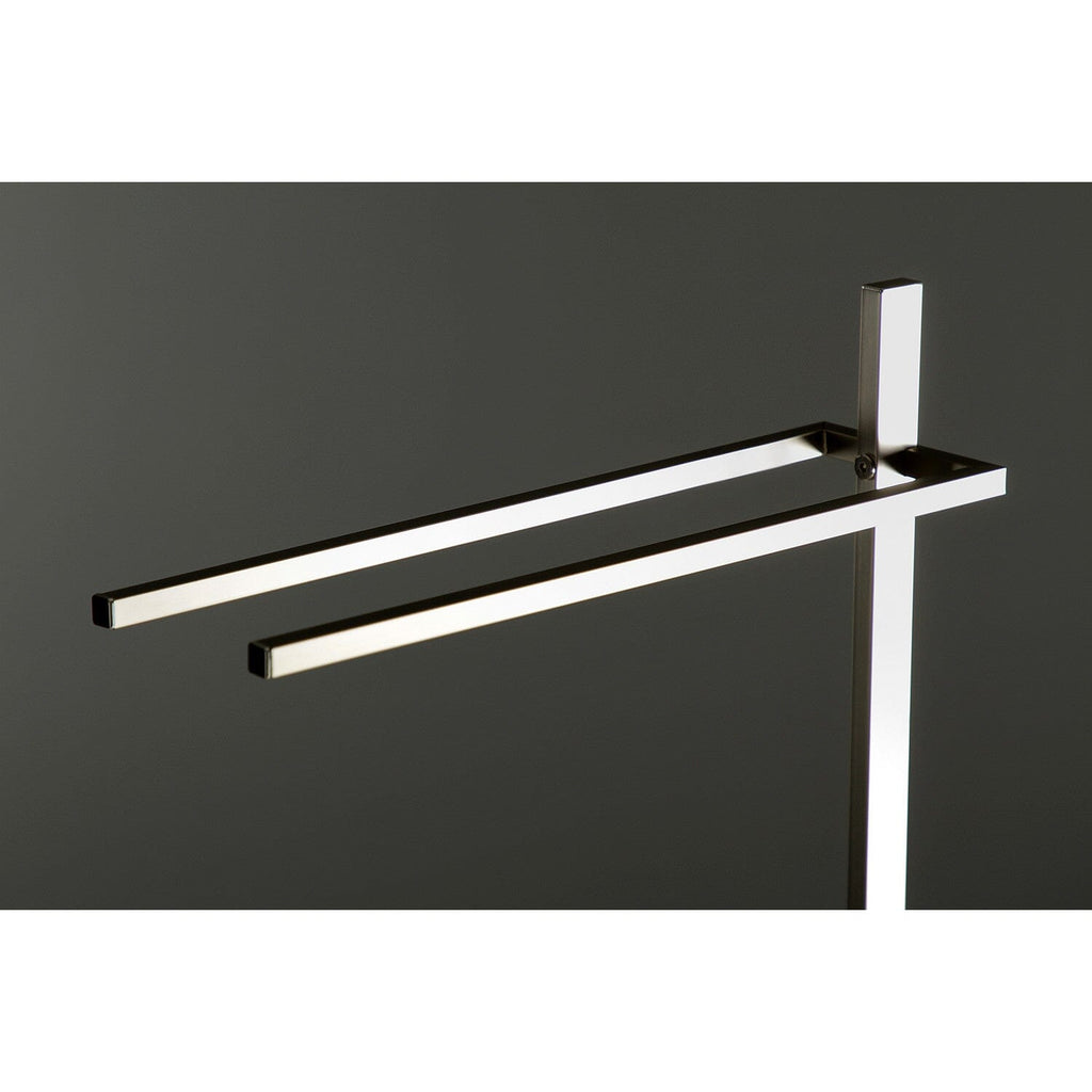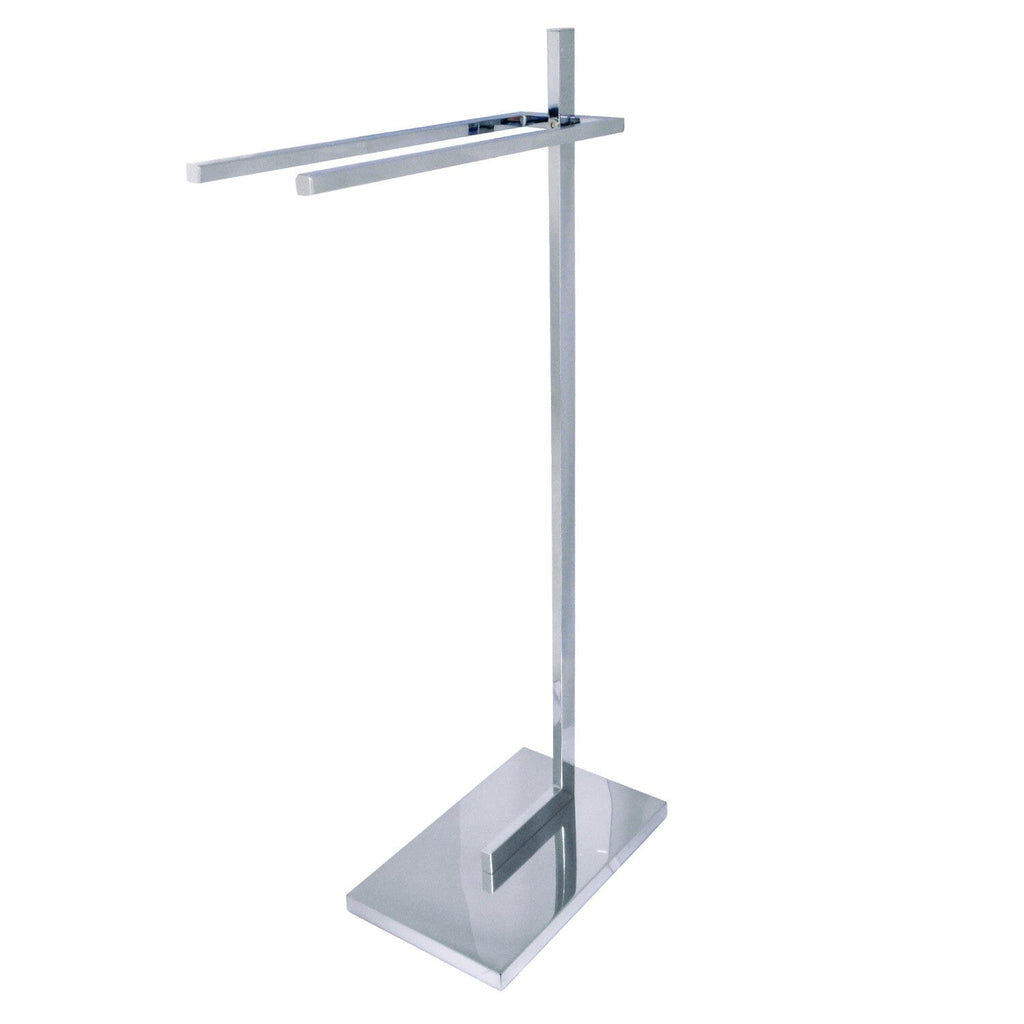 Claremont 32-Inch Freestanding Pedestal T-Shape Towel Rack Keep fresh towels nearby with the Claremont freestanding T-shape towel rack. The stand design will hold up to two large towels or several smaller ones. Constructed with solid brass and stainless steel base....