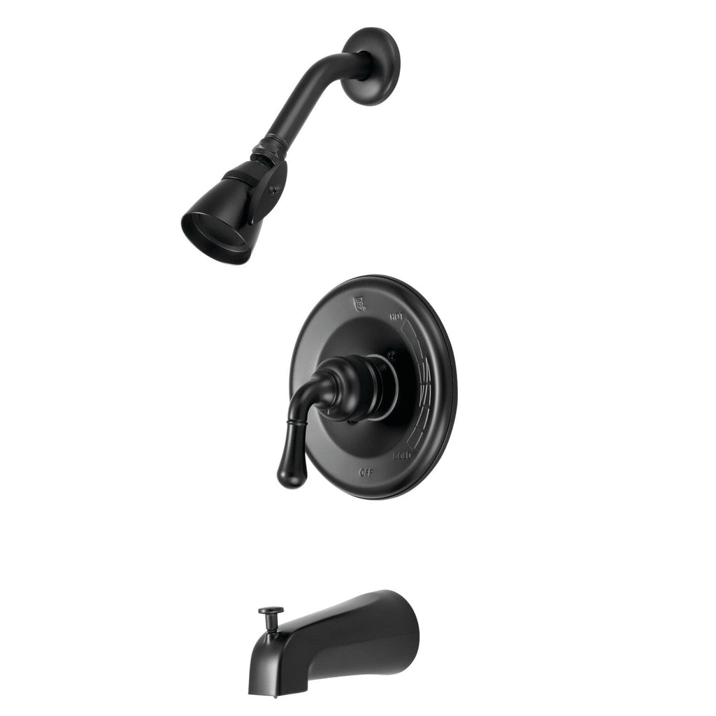 The timeless appeal of this tub and shower faucet's sleek and simple design transforms any bathroom into a destination location. Complete with an easy-to-turn lever handle, an optimum bathing experience awaits. Enjoy the sturdy brass construction and premium polished chrome/polished brass finishes for a fixture that will last for years to come. A pressure balanced valve is included for safety and protection against accidental burns.