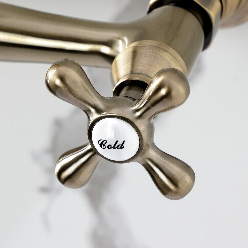 English Country Double-Handle 2-Hole Wall Mount Bathroom Faucet