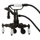 Kingston Three-Handle 2-Hole Tub Wall Mount Clawfoot Tub Faucet with Hand Shower