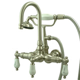 Kingston Three-Handle 2-Hole Tub Wall Mount Clawfoot Tub Faucet with Hand Shower