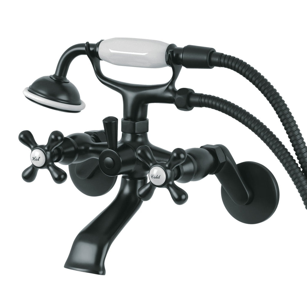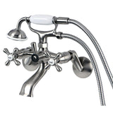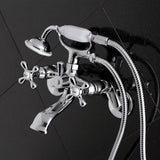 Kingston Two-Handle 2-Hole Wall Mount Clawfoot Tub Faucet with Hand Shower