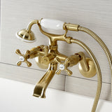 Kingston Three-Handle 2-Hole Tub Wall Mount Clawfoot Tub Faucet with Hand Shower