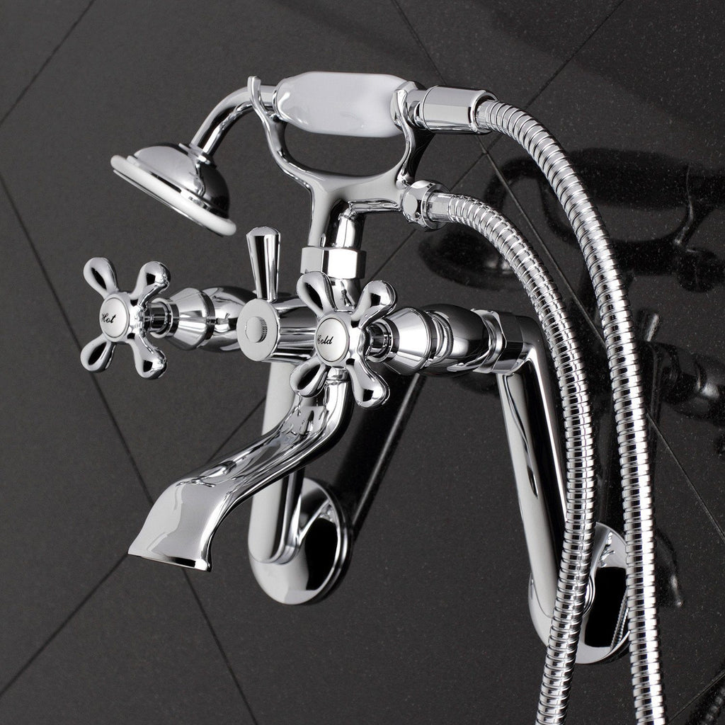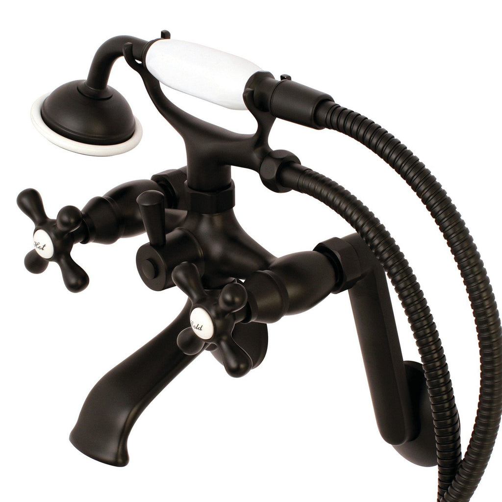Kingston Two-Handle 2-Hole Wall Mount Clawfoot Tub Faucet with Hand Shower