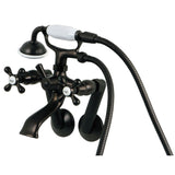 Kingston Three-Handle 2-Hole Tub Wall Mount Clawfoot Tub Faucet with Hand Shower