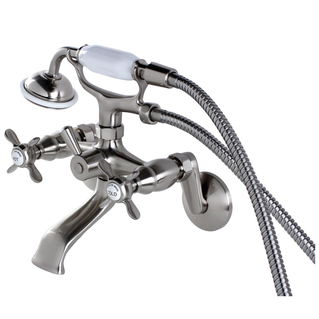 Kingston Two-Handle 2-Hole Wall Mount Clawfoot Tub Faucet with Hand Shower