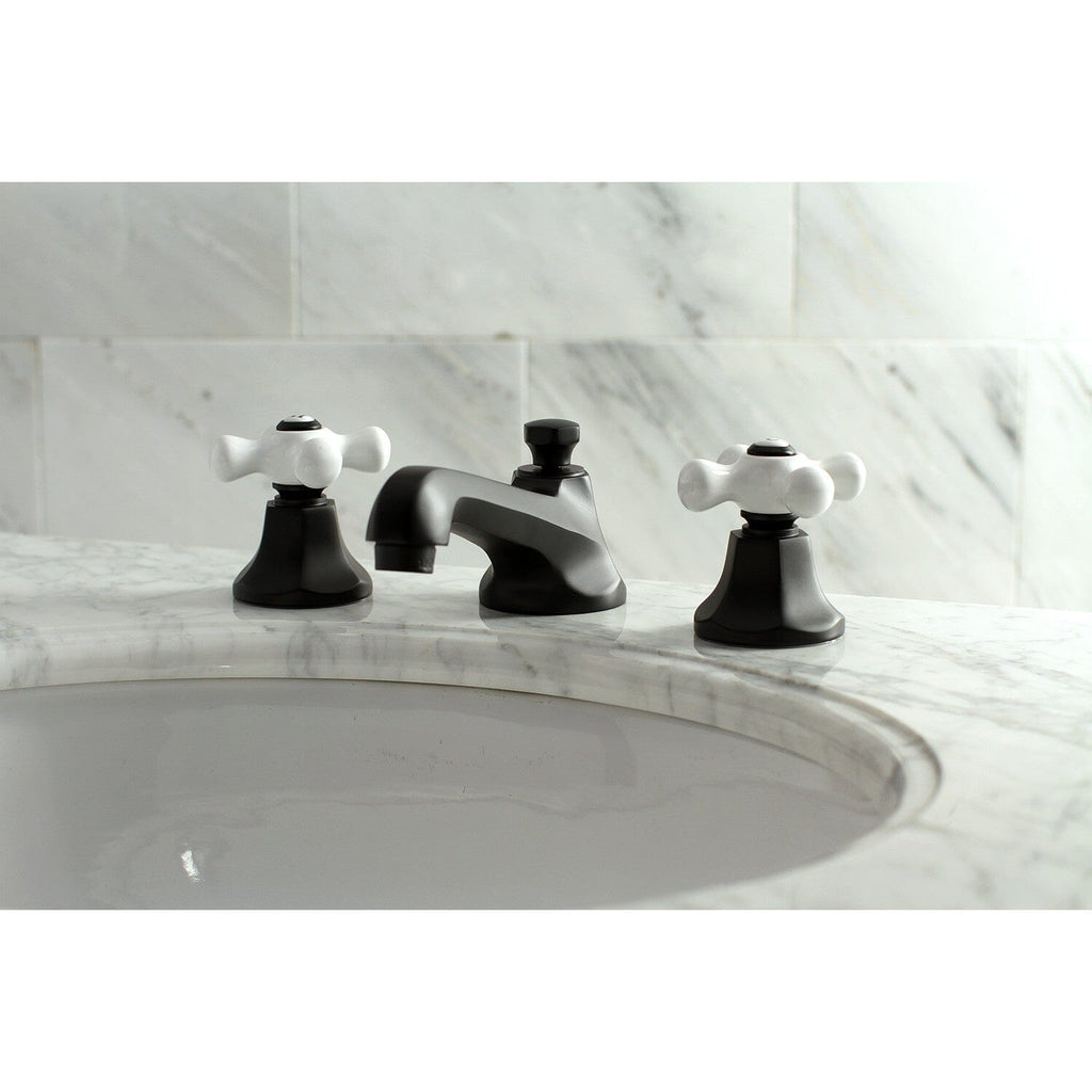 This faucet provides beauty and magnificence with its subtle detailing. Ideal for more spacious bathrooms, widespread faucets are more spread apart and feature a 3-hole installation. The Metropolitan 8" Widespread Bathroom Faucet, with its featured sturdy brass construction and premium matte black finish, are guaranteed to glamorize your home's modern ensemble for years to come. Luxuriousness and elegance is delivered by the qualities found in this fixture. A matching finish drain is also included.