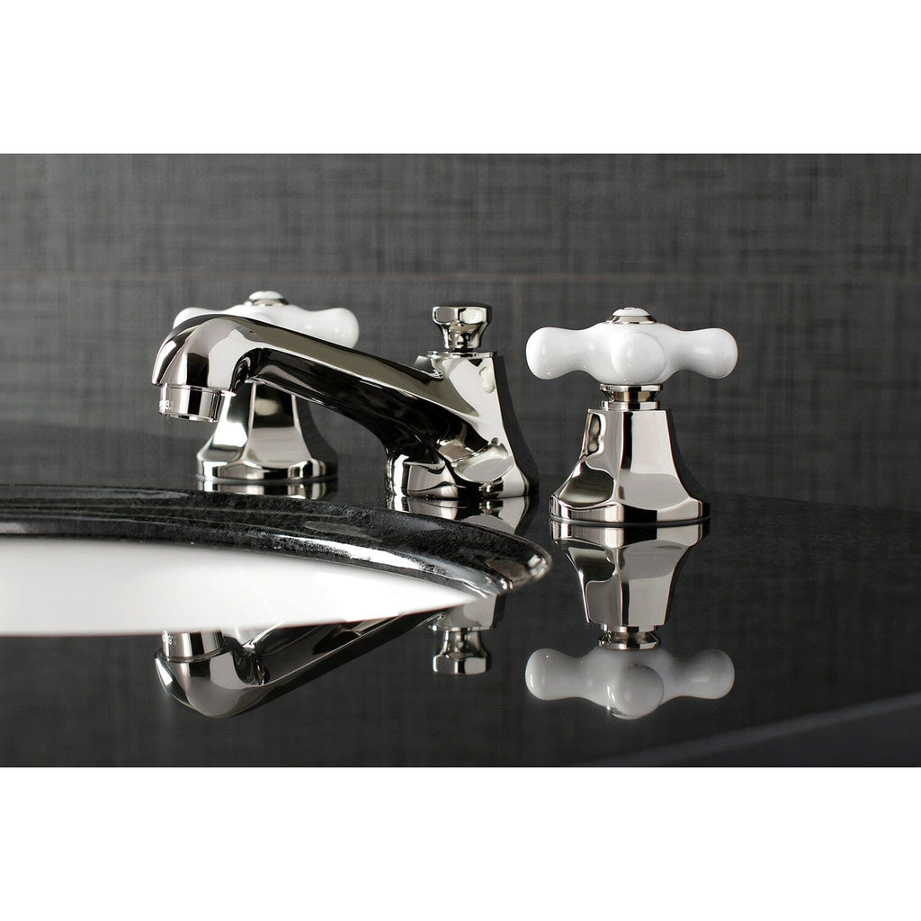 Heirloom Two-Handle 3-Hole Deck Mount Widespread Bathroom Faucet with Brass Pop-Up Ideal for more spacious bathrooms, widespread faucets are more spread apart and feature a 3-hole installation. The Heirloom 8" Widespread Bathroom Faucet, with its its featured sturdy brass construction...