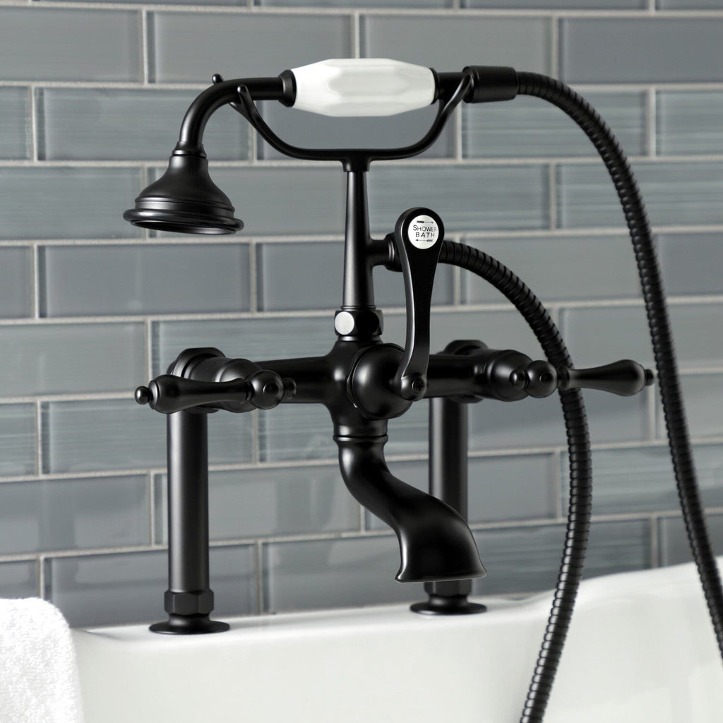 Vintage opulence finds itself within this deck-mount clawfoot tub faucet. As the perfect complement to your tub, this will complete your refined bathroom decorum with the help of its premium, glistening matte black finish and telephone style hand shower. The solid brass construction also makes for a heavy, quality made product.