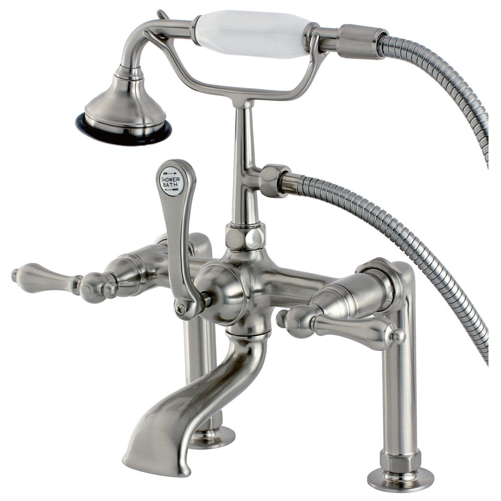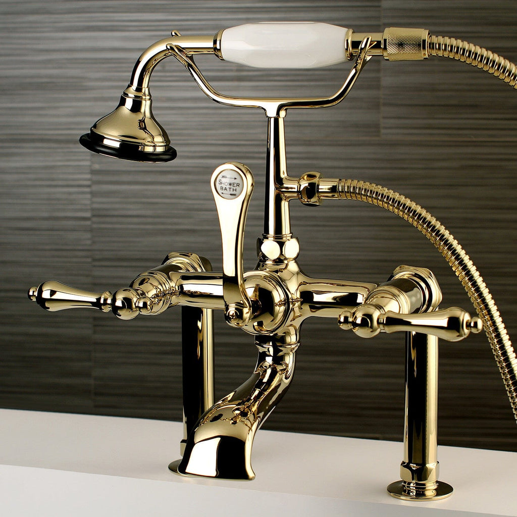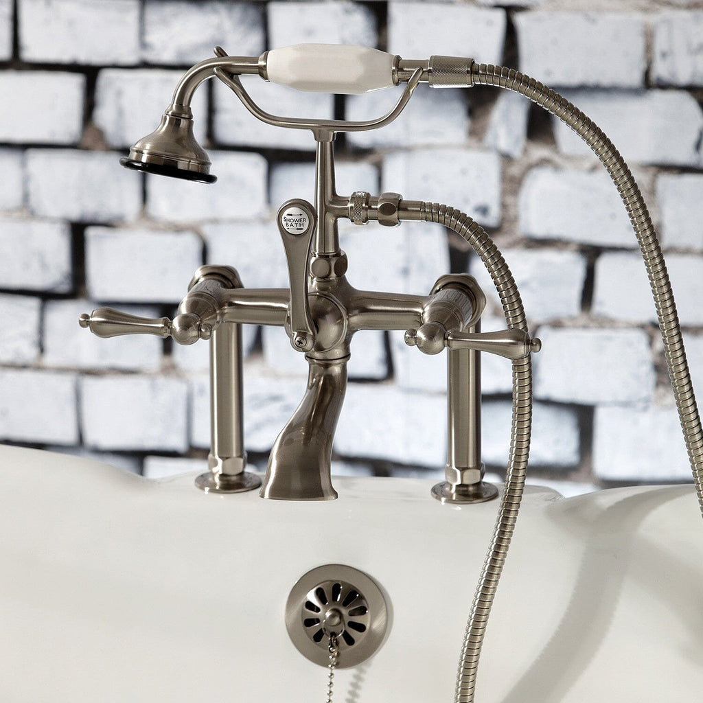 Aqua Vintage Three-Handle 2-Hole Deck-Mount Clawfoot Tub Faucet with Hand Shower