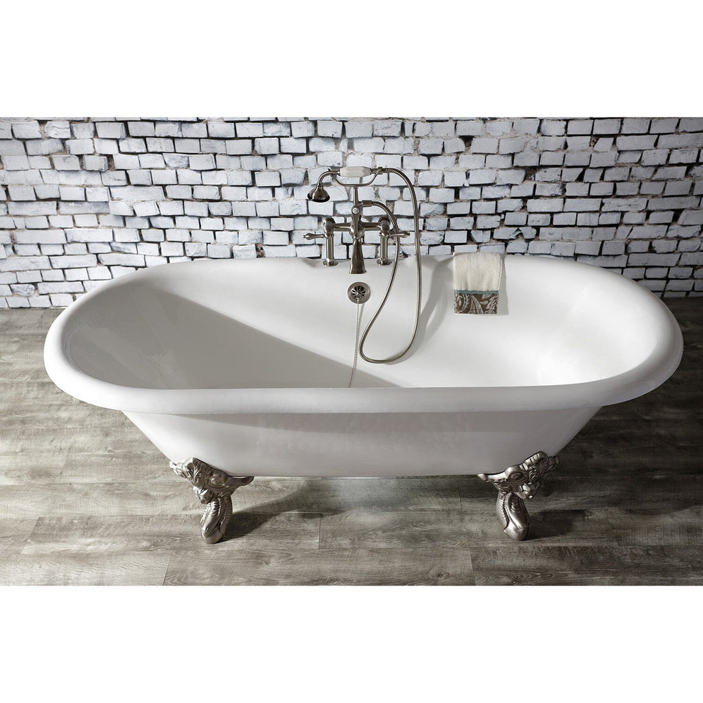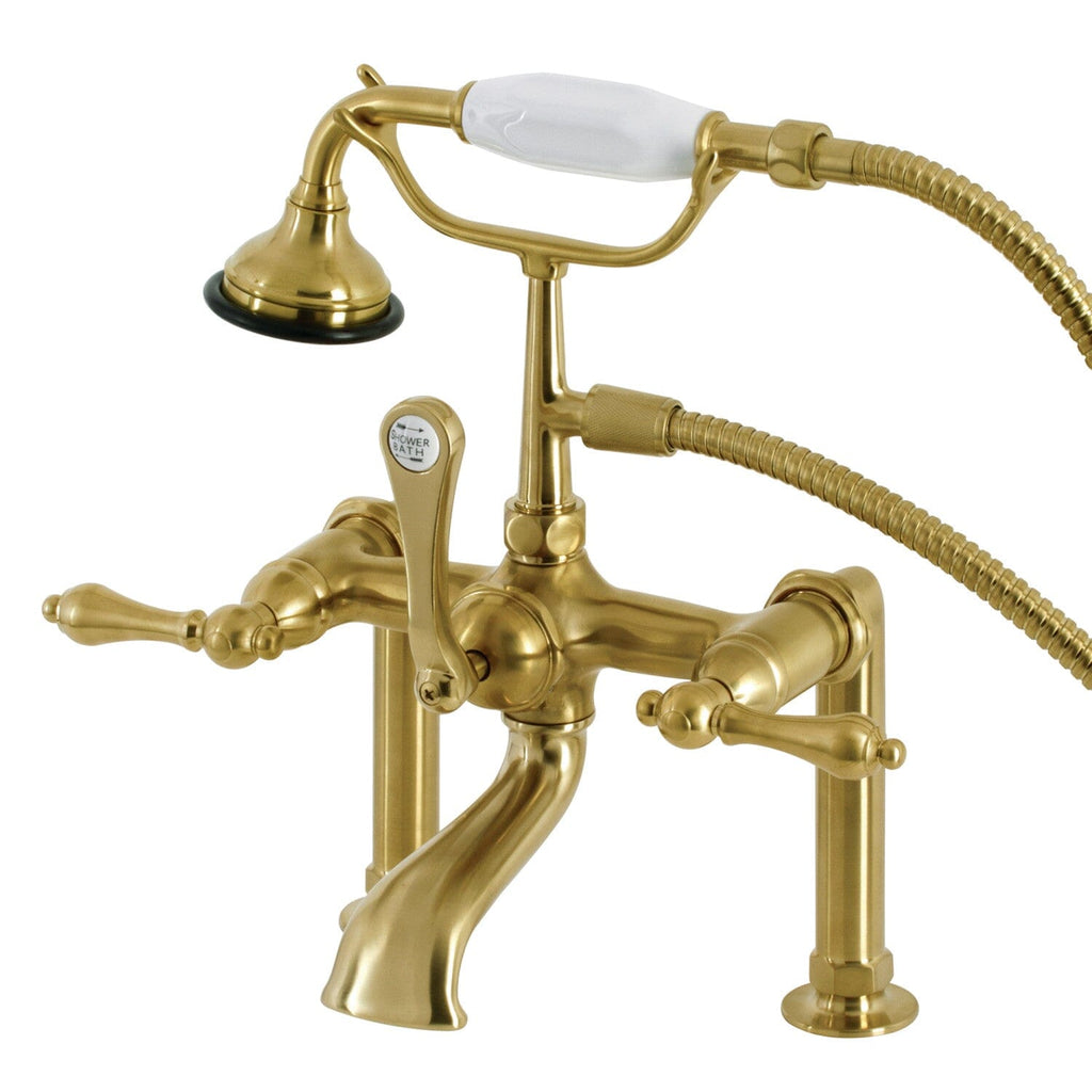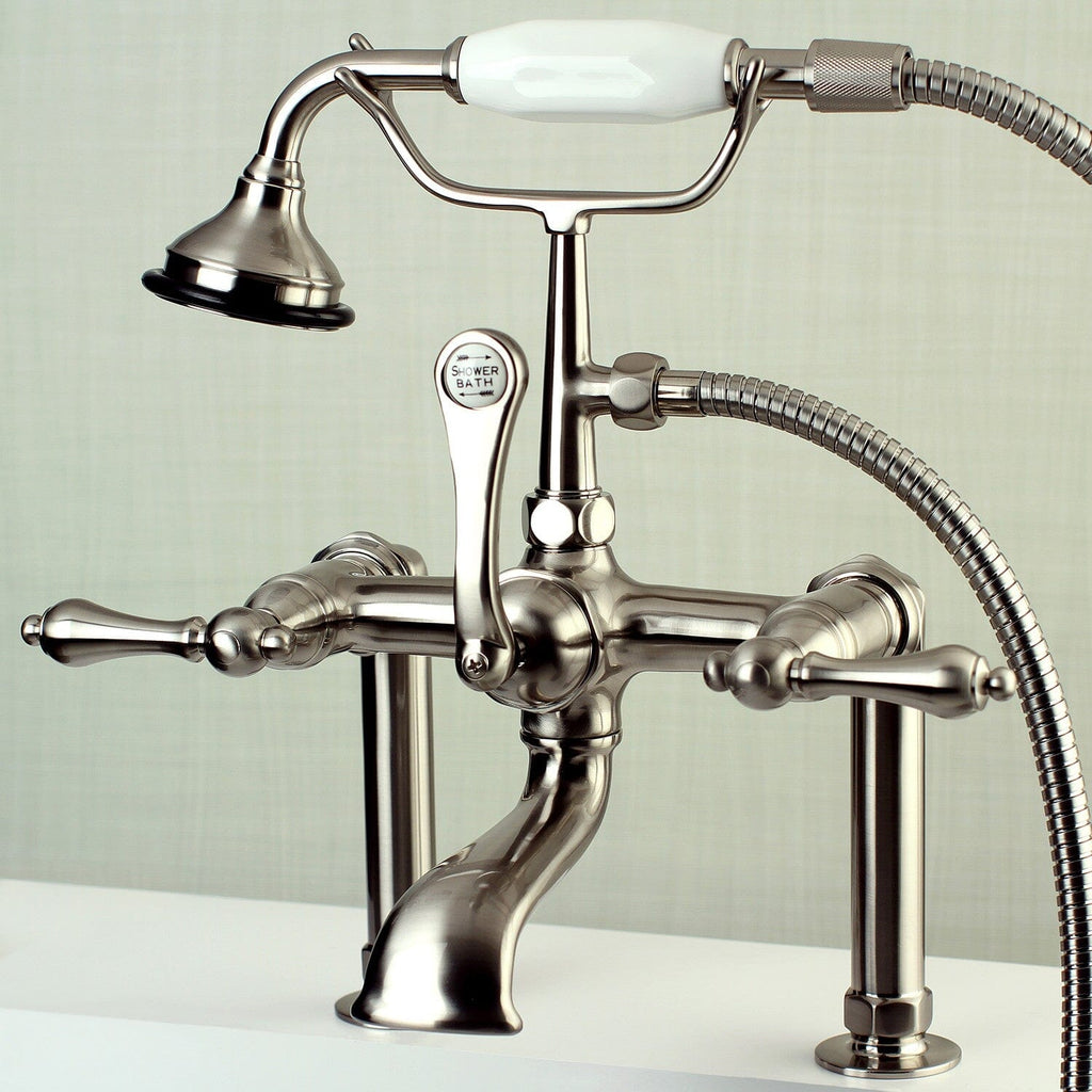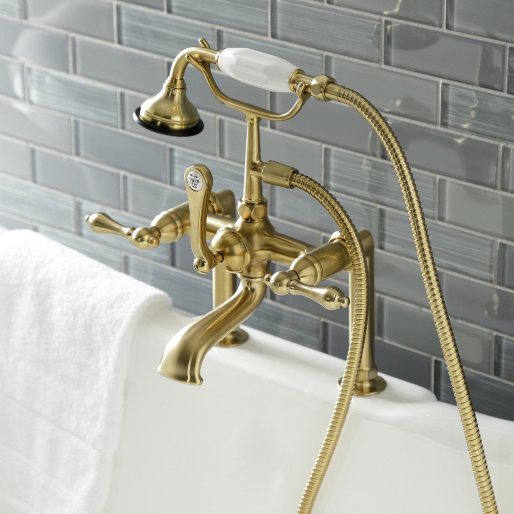 Aqua Vintage Three-Handle 2-Hole Deck-Mount Clawfoot Tub Faucet with Hand Shower