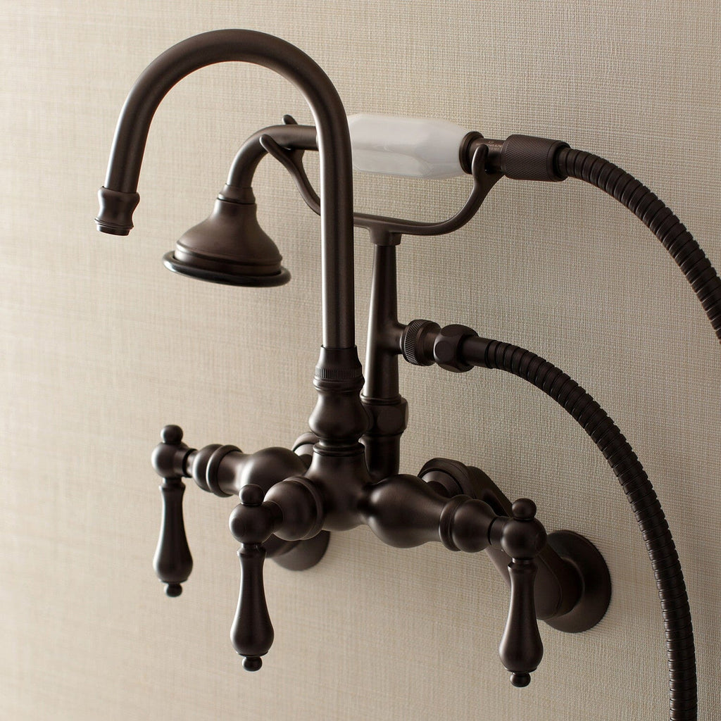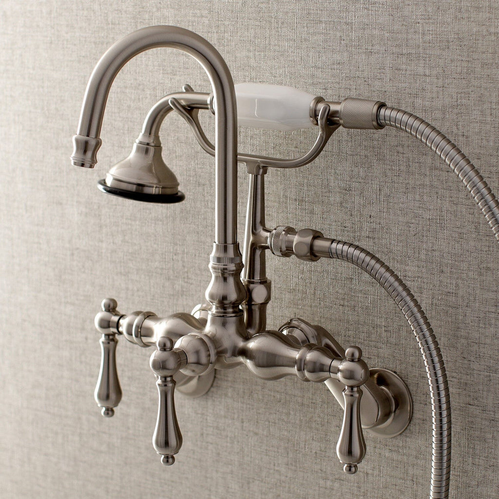 Aqua Vintage Three-Handle 2-Hole Tub Wall Mount Clawfoot Tub Faucet with Hand Shower