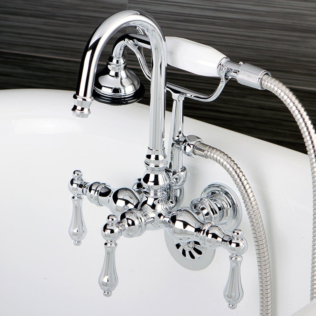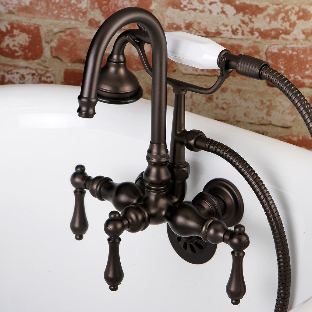 Aqua Vintage Three-Handle 2-Hole Tub Wall Mount Clawfoot Tub Faucet with Hand Shower