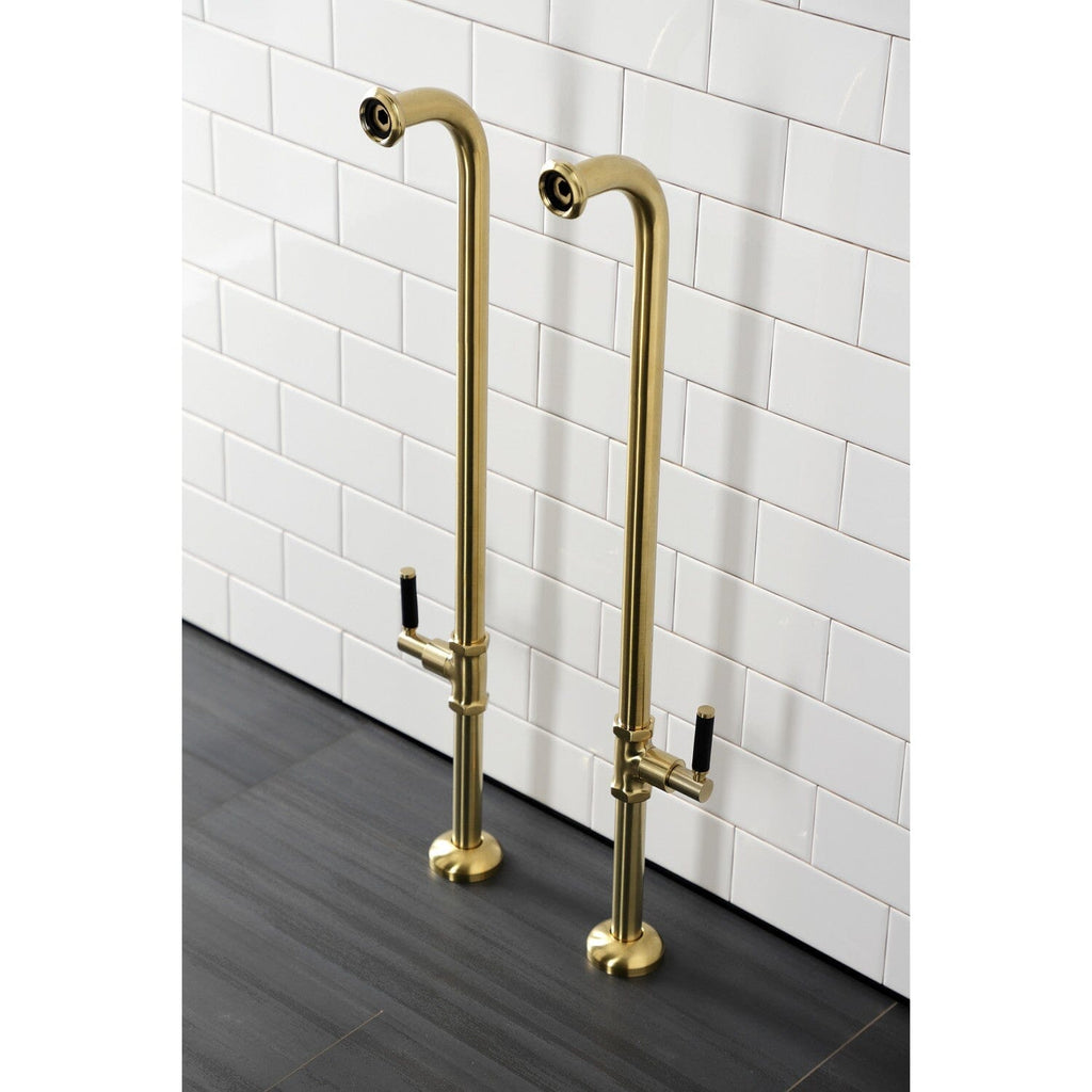 Dive into modern design with the sleek and cylindrical styling of this freestanding supplies from the Concord Collection. This freestanding tub supply line set features a floor-mount installation and 27-3/4 inch height. Constructed of solid brass material. Excellence of endurance and reliability is emboldened by a Corrosion-resistant finish, embellish your home ensemble with this freestanding water supplies. The water supplies comes in pairs and includes valve stops with lever handles. Available in a variety of finishes.