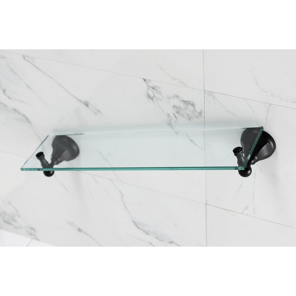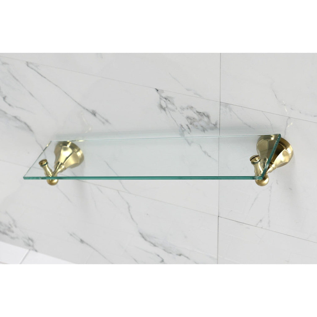 This Designer Hardware glass shelf tastefully adds extra storage space to your contemporary bathroom. The simplistic design includes two polished chrome mounting wall brackets for a strong, secure hold.