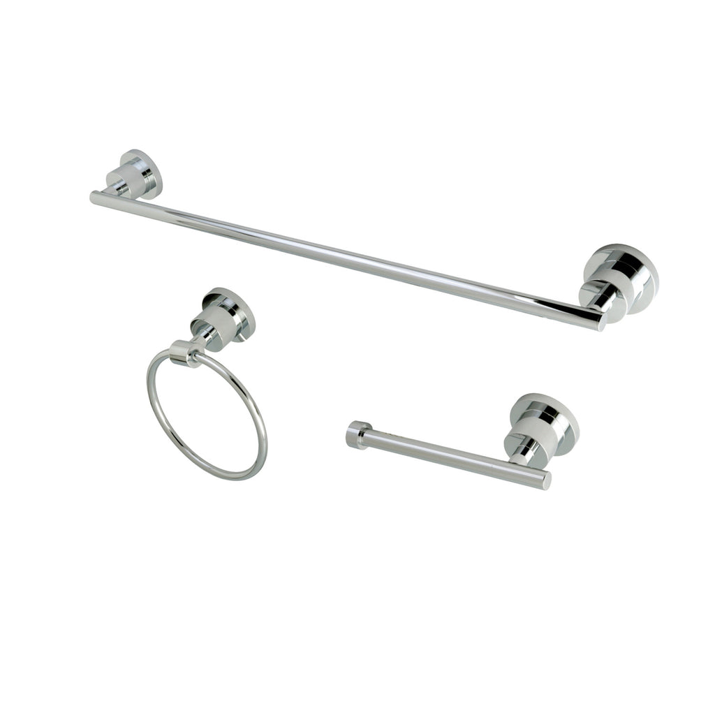 - 3-piece set includes: 24" towel bar, towel ring, and toilet paper holder