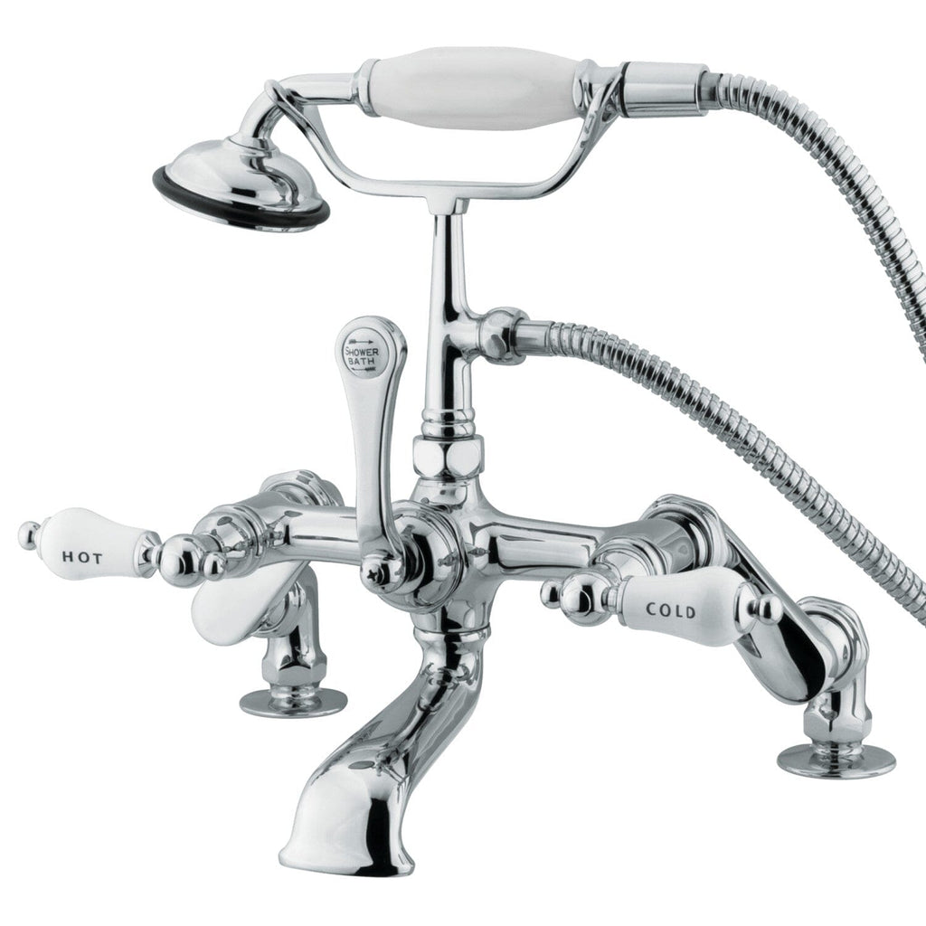 Vintage Three-Handle 2-Hole Deck-Mount Clawfoot Tub Faucet with Hand Shower