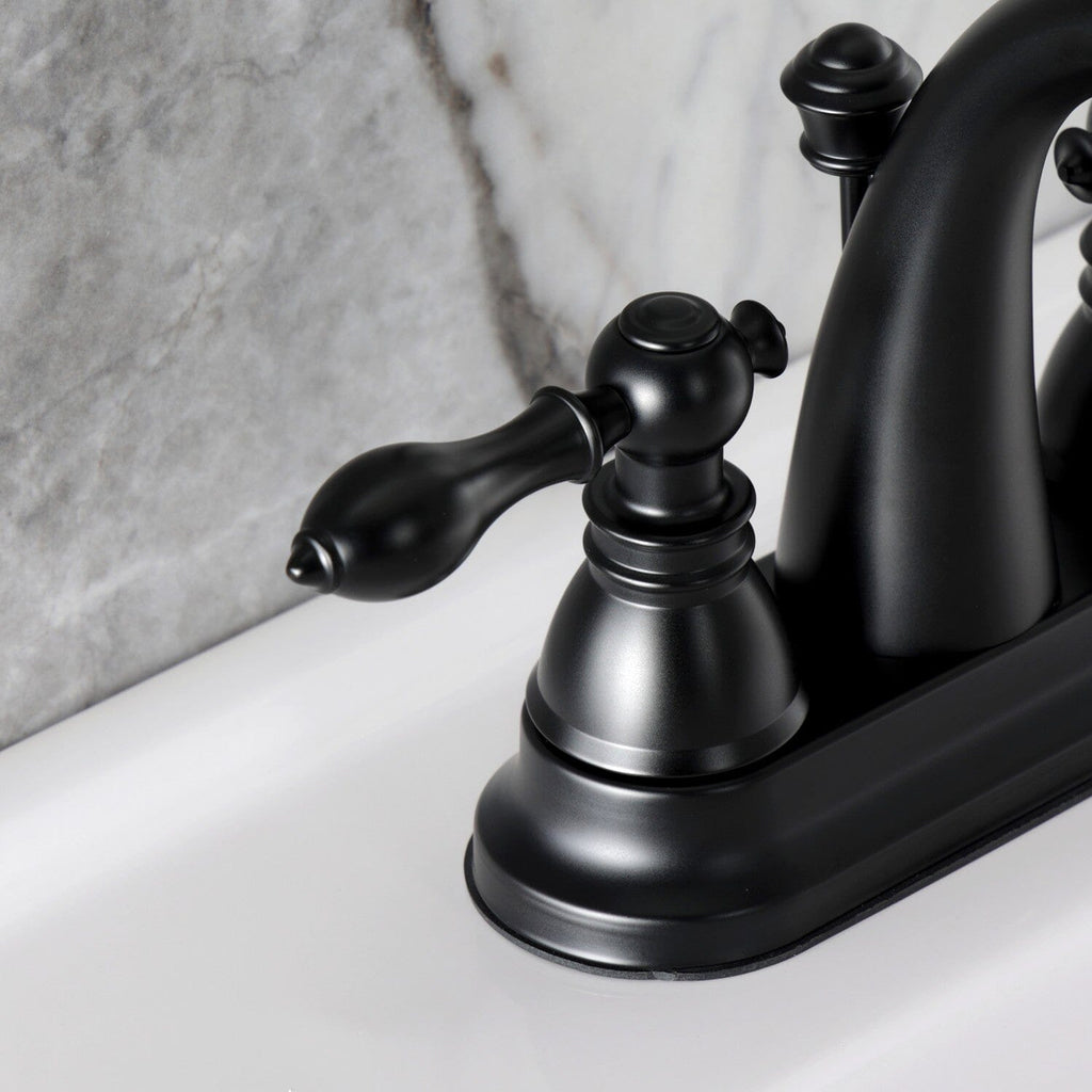 This faucet is perfect for those seeking inspiration from the exquisite artistry and architecture of the traditional Victorian era. Centerset bathroom faucets are ideal for smaller bathrooms and feature an easy 3-hole installation. The American Classic 4-inch centerset bathroom faucet with pop-up drain and its featured sturdy brass construction and premium antique copper finish are guaranteed to glamorize your home's ensemble for years to come. This faucet will surely personify any homeowner's refined tastes with its regal qualities. A matching finish drain is also included.