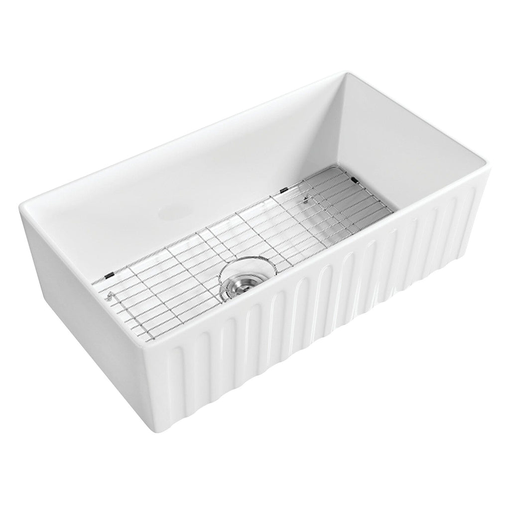Kaolin 33-Inch Ceramic Apron-Front Single Bowl Farmhouse Kitchen Sink with Bottom Grid and Strainer