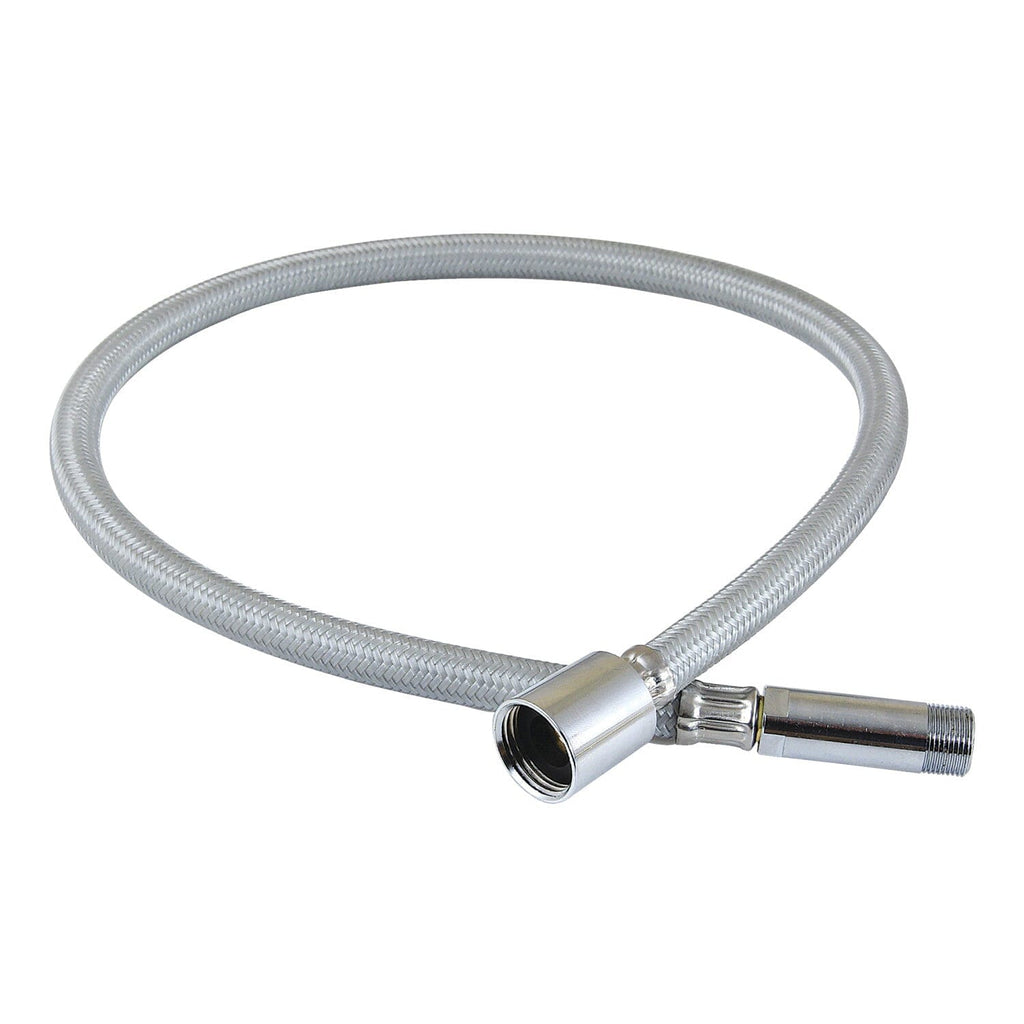 The 29" kitchen spray hose from Designer Hardware suits your plumbing needs as an essential component for water transference. The hose is designed to connect to a kitchen sink side sprayer allowing water to flow through for washing and cleaning purposes. The PVC material provides the hose flexibility, impact and moisture resistance and impressive stability. Easy to install and constructed for style and performance, the hose is one of many Designer Hardware parts offered as the best solution for your daily kitchen chores. 1/4-18 NPSM x 1/2-14 NPSM connection.