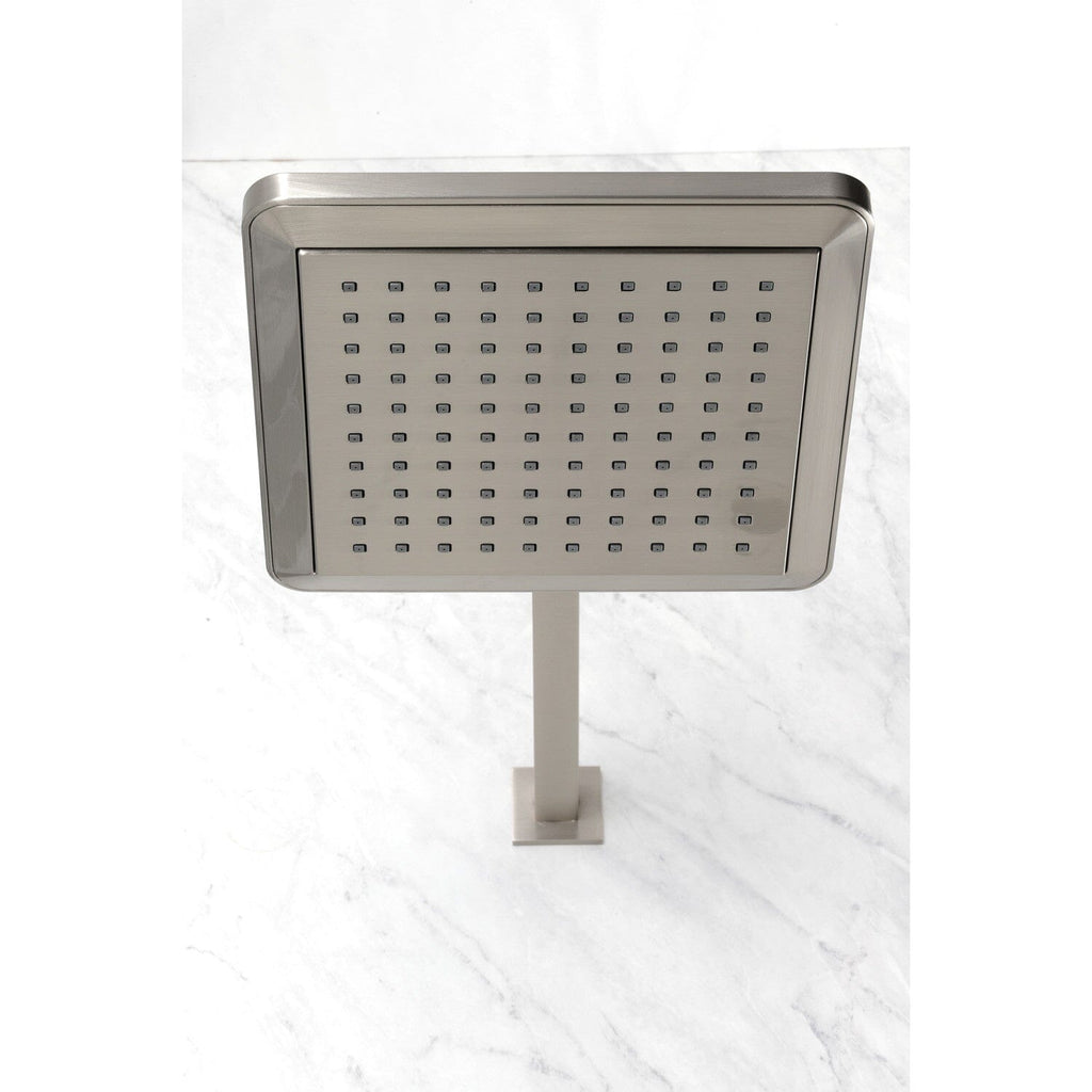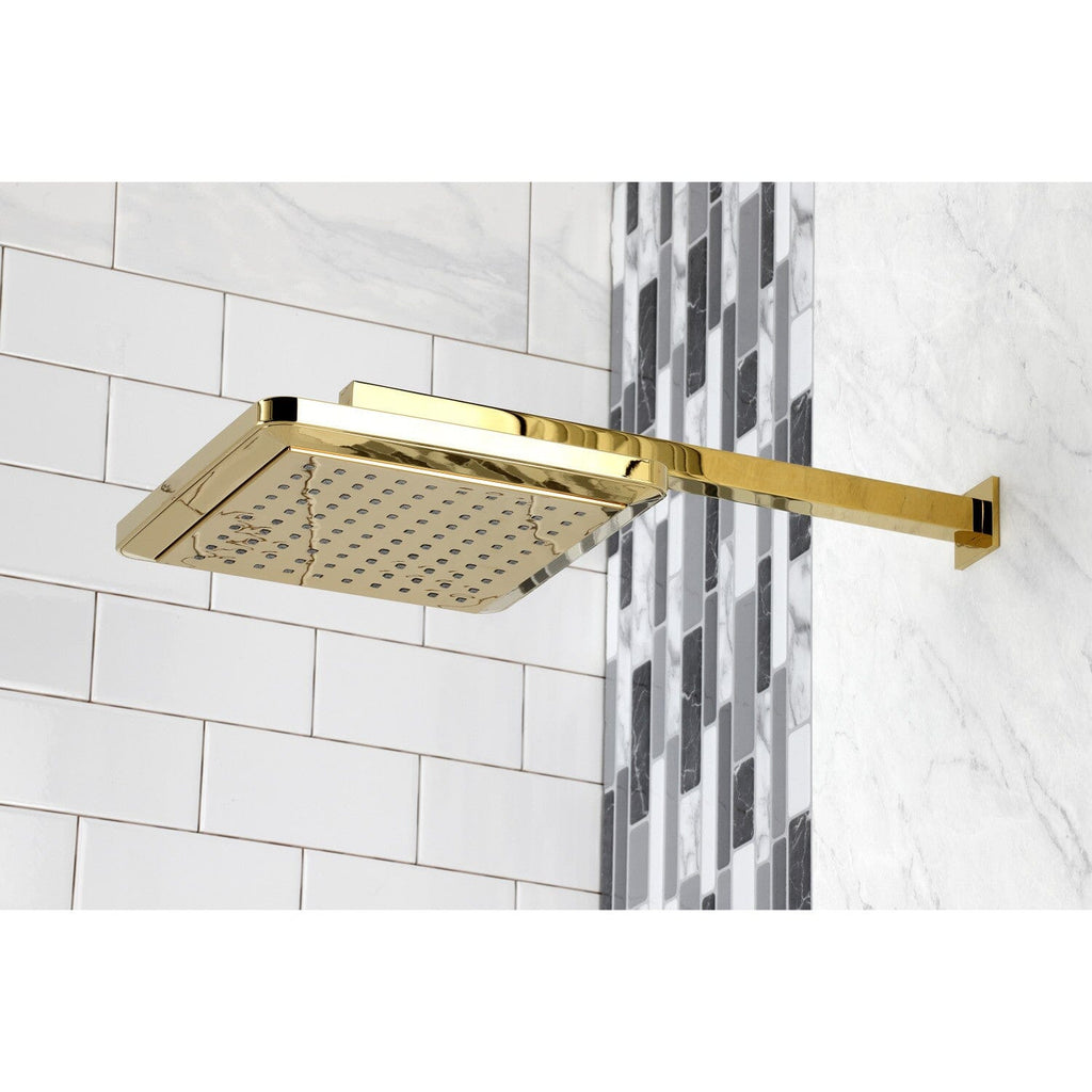 Step into a rainforest with this rain shower head's soothing nature and calming water flow. With 100 water channels, the Shower Scape square shower head with shower arm will rejuvenate both your body and soul. The rain drop technology coupled with the 9-5/8" diameter face ensures that every part of your body feels the soothing sensation of rain. The included brass shower arm and flange provides 14-7/8" extended length from wall to shower head center.