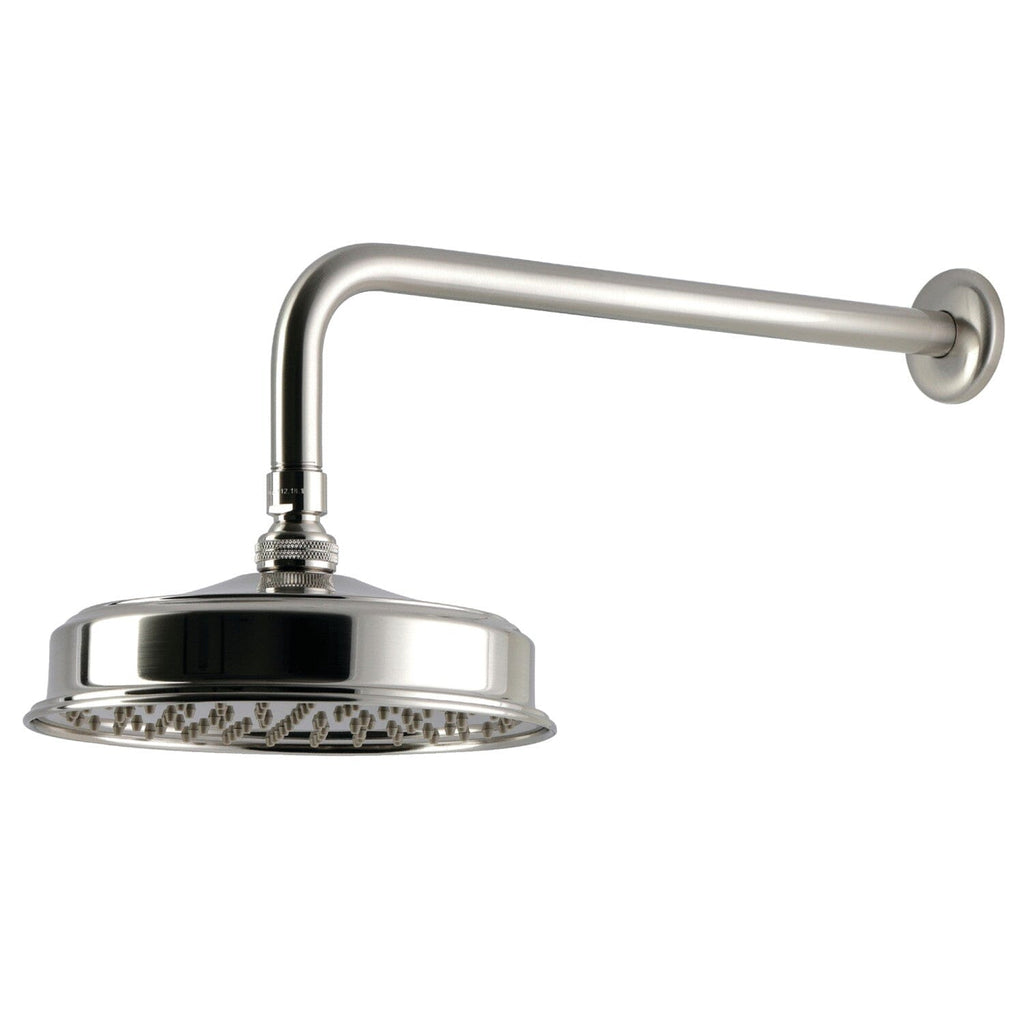Victorian 7-3/4 Inch Round Raindrop Brass Shower Head with 12-Inch Shower Arm Step into a rainforest with this rain showerhead's soothing nature and calming water flow. With 141 water channels, the Shower Scape brass showerhead with 12" shower arm will...