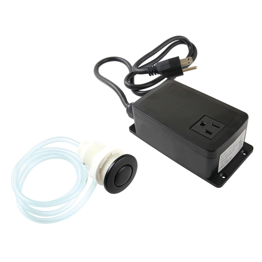 The disposal air switch button from Gourmetier is a convenient way in finishing work around the kitchen sink. The button, which can be mounted to the sink or the countertop, connects to a hose which plunges air activating the disposal. The stainless steel button cover is available in a multitude of finishes (Chrome, brass, bronze, nickel) to complement the finish of your faucet and/or surrounding decor. This air switch kit includes: air switch button, air tube, and single outlet power module.