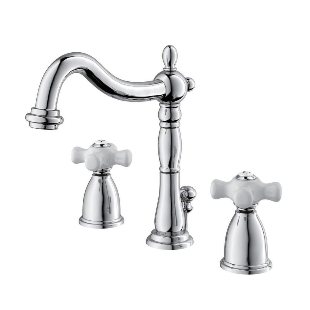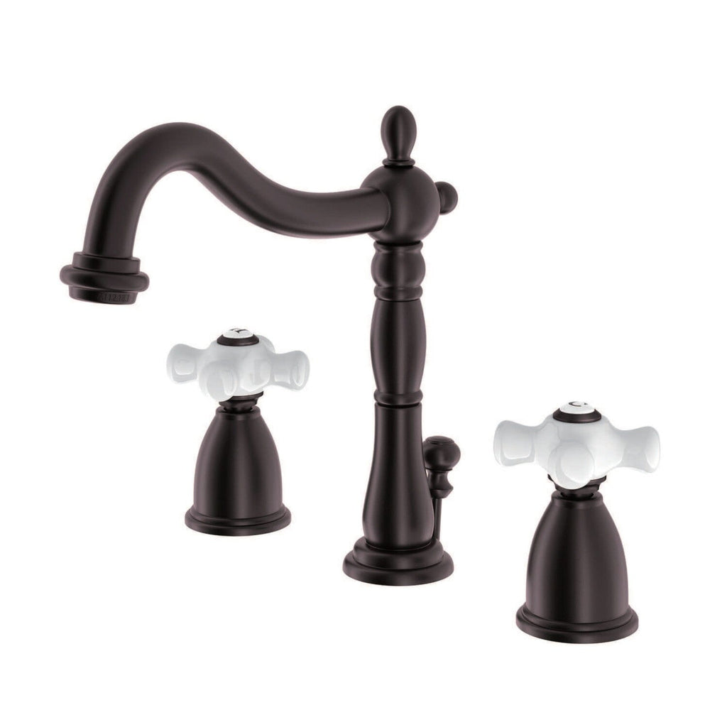 A lavish spark of traditionally stylized glamour is brought to your bathroom ensemble with this beautiful faucet. Ideal for more spacious bathrooms, widespread faucets are more spread apart and feature a 3-hole installation. The Heritage 8" Widespread Bathroom Faucet, with its featured sturdy brass construction and premium oil rubbed bronze finish, are guaranteed to glamorize your home's traditional ensemble for years to come. Celebrate sophistication and traditional decor with this statement piece. A matching finish drain is also included.