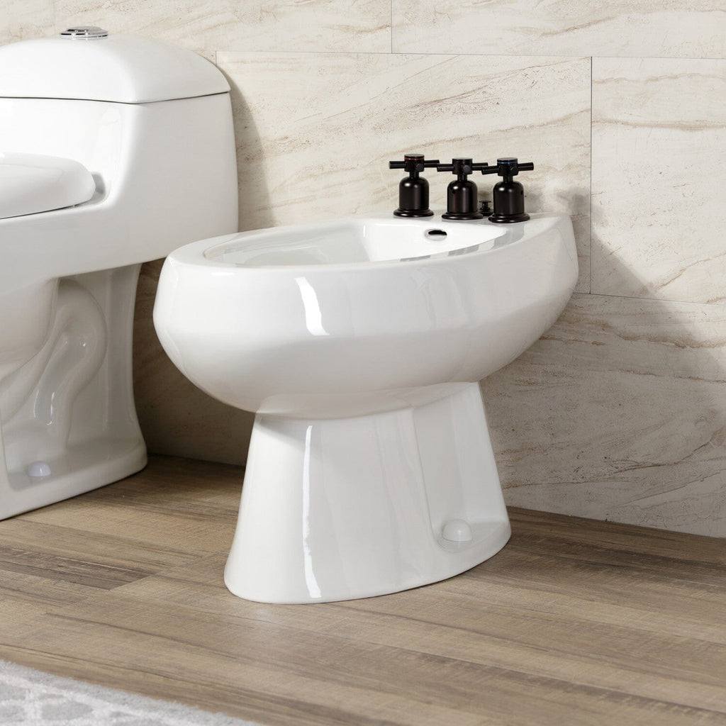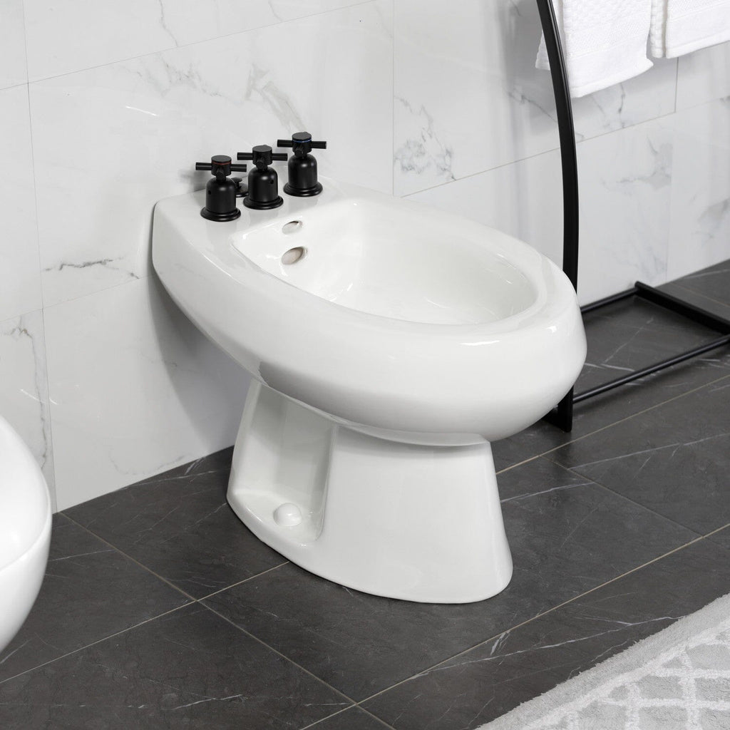This faucet boasts bold, sleek design with its cylindrical styling. For ease of cleansing, bidet faucets are specific for use with bidets, often having water sprayed from above or below. The Concord Bidet Faucet With Three Cross Handle and its featured sturdy brass construction and premium finish are guaranteed to bring functionality and form to your home's modern ensemble for years to come. Flash the radical brilliance of contemporary trends with this statement piece.