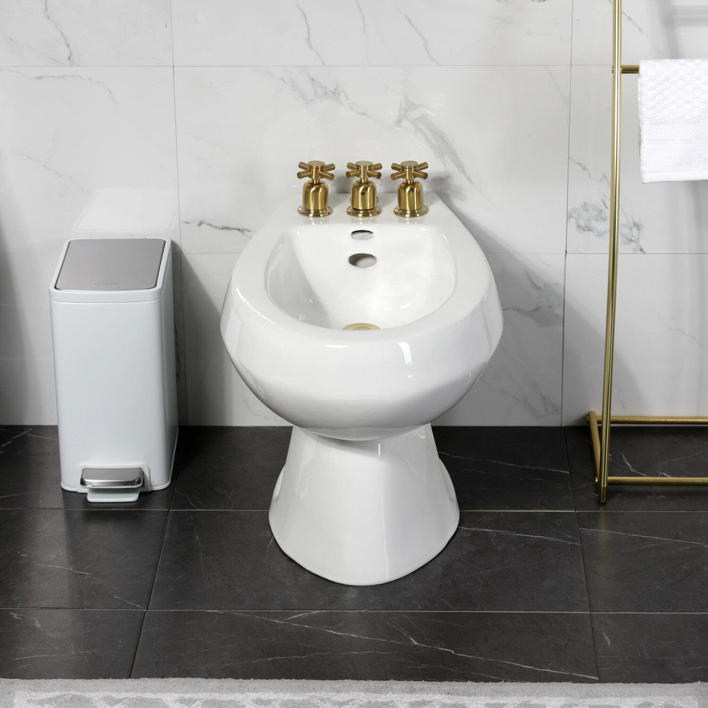 Concord Three-Handle Deck Mount Vertical Spray Bidet Faucet with Brass Pop-Up
