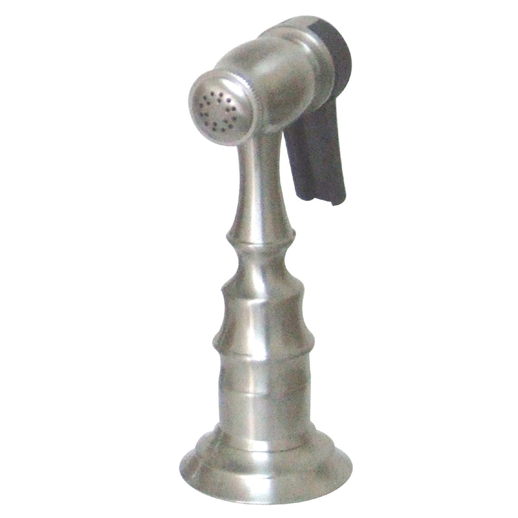 The Designer Hardware kitchen side spray, constructed of brass, can be used to replace or in select instances upgrade or update your kitchen faucets existing side spray. This item can only be used with side spray compatible faucets and should not be installed in alternate configurations. Available in multiple finishes to match your faucet. Includes 60" hose sheathed in braided PVC for durability and cleaning chemical resistance.