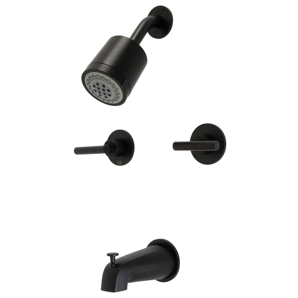 Embellish your contemporary home with the swankiness and elegance that this tub and shower faucet provides. Complete with easy-to-turn lever handles, an optimum bathing experience awaits. Enjoy the sturdy brass construction and premium matte black finish for a fixture that will last for years to come. Internal valve hardware is included for your use.