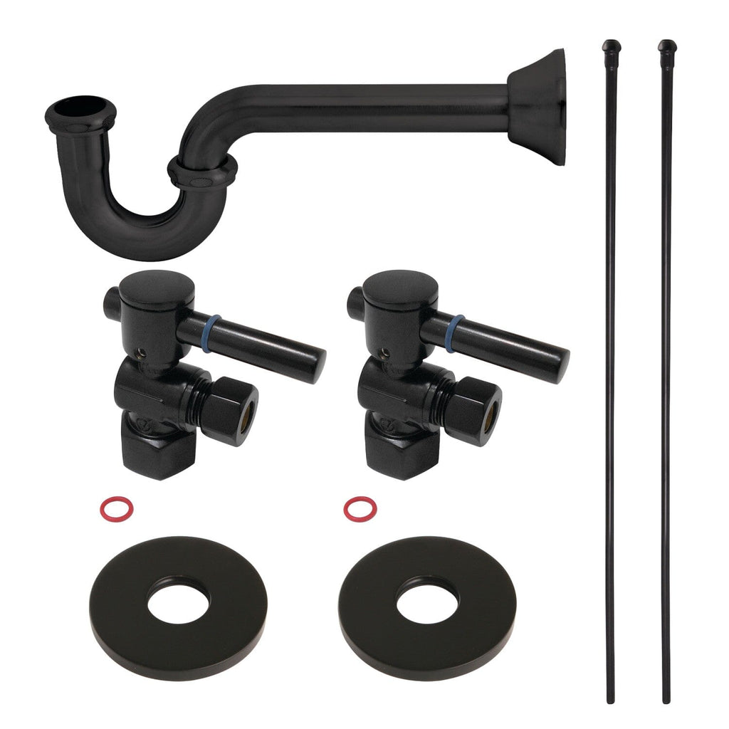 - Kit contains: 2 angle stops, 2 wall flanges, 2 supply lines, 1 p-trap, 1 p-trap wall flange