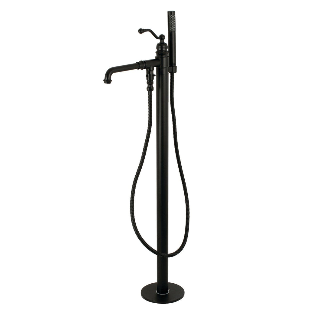 Distinguished for their stately configuration and artsy architecture, freestanding tub faucets are the perfect fixture for any contemporary home to both complement a freestanding tub and act as a beautiful ornamental piece in your bathroom. As the perfect accompaniment to your tub, the English Country Freestanding Roman tub filler with Hand Shower will surely complete your refined bathroom decorum with the help of its premium, glistening matte black finish and hand shower. The solid brass construction also makes for a heavy, quality made product.