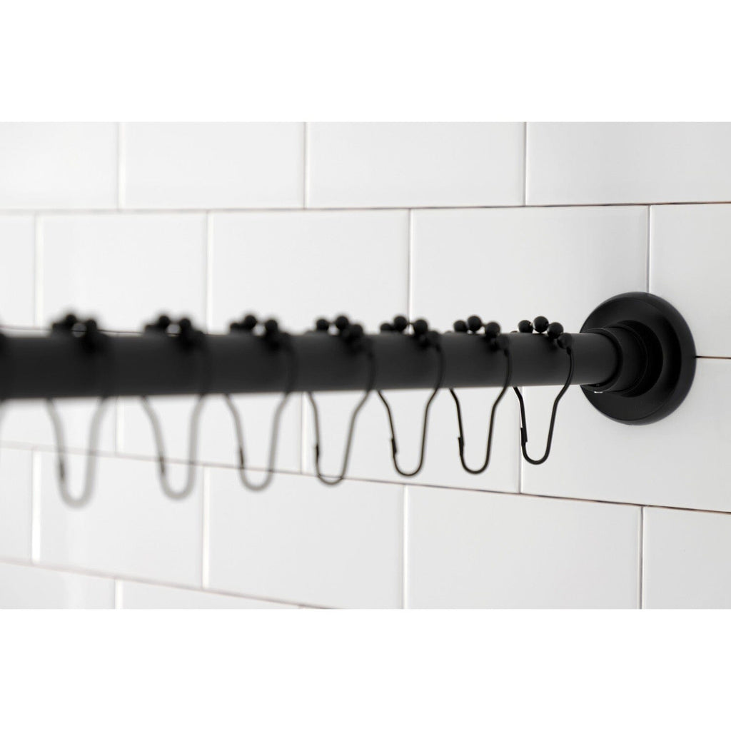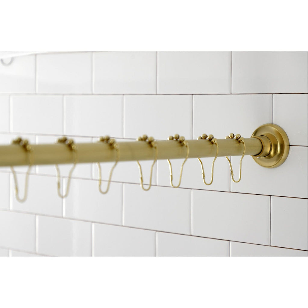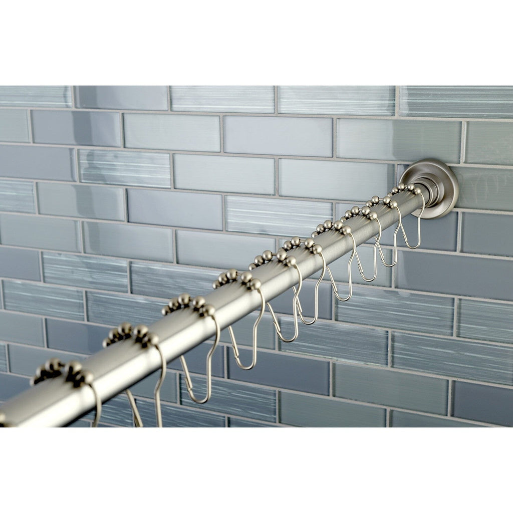 Get all of your shower curtain accessory essentials with the help of this all-inclusive shower curtain rod and rings set. This package includes everything you need to give your shower or bath area that upgraded look with a straight shower rod that adjusts from 60-72". The matching roller ball rings easily fit onto most shower curtains and glide open with a light tug.