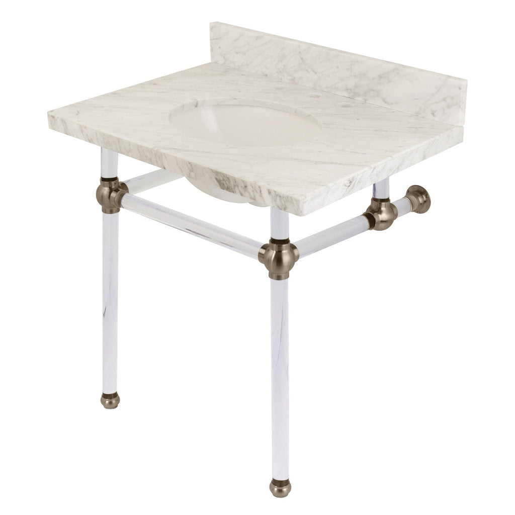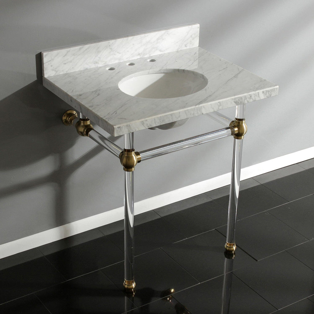 Templeton 30-Inch Carrara Marble Vanity Top with Acrylic Legs (8-Inch, 3-Hole)