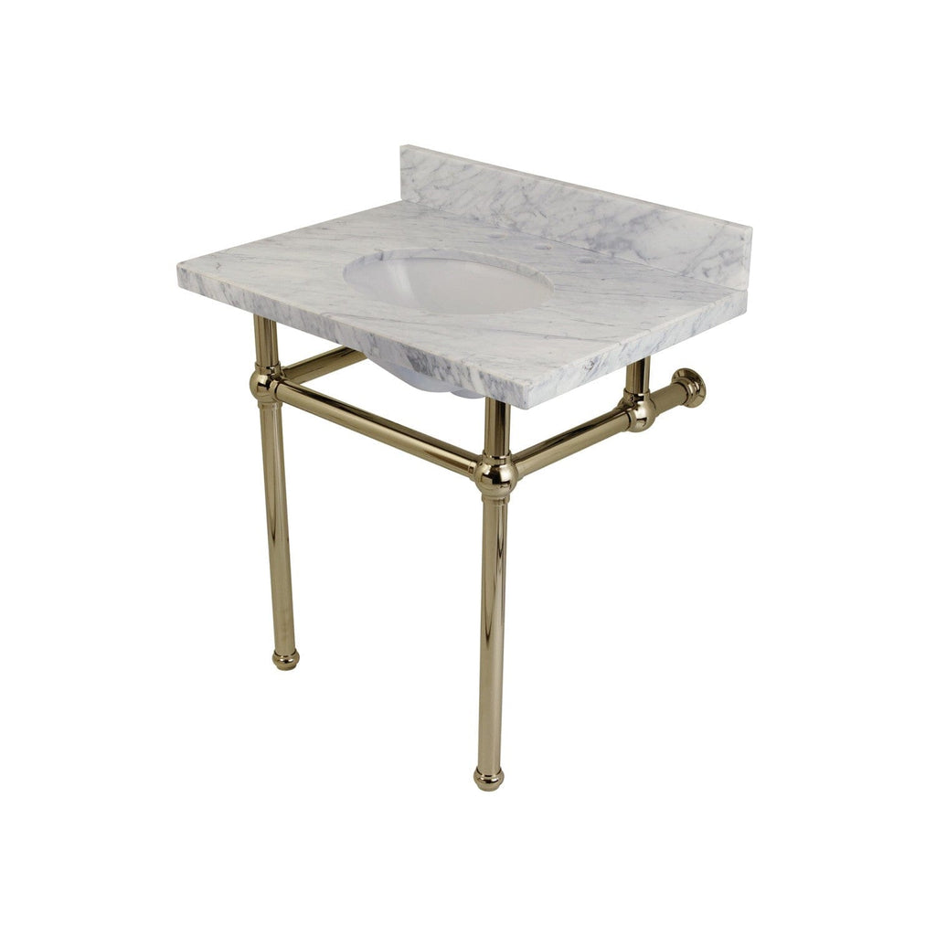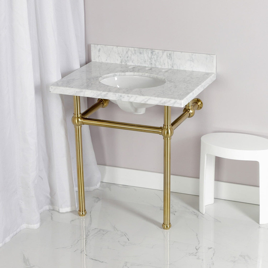 Templeton 30-Inch Carrara Marble Vanity Top with Brass Legs (8-Inch, 3-Hole)