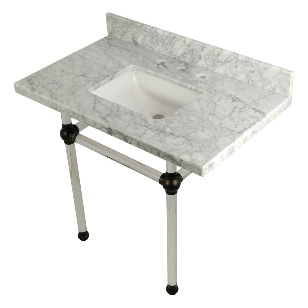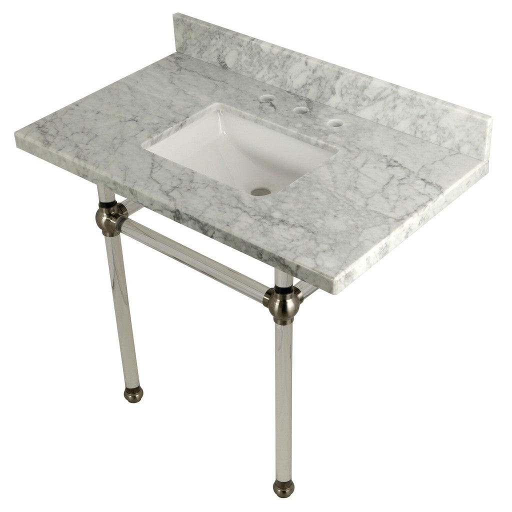 Templeton 36-Inch Carrara Marble Vanity Top with Acrylic Legs (8-Inch, 3-Hole)