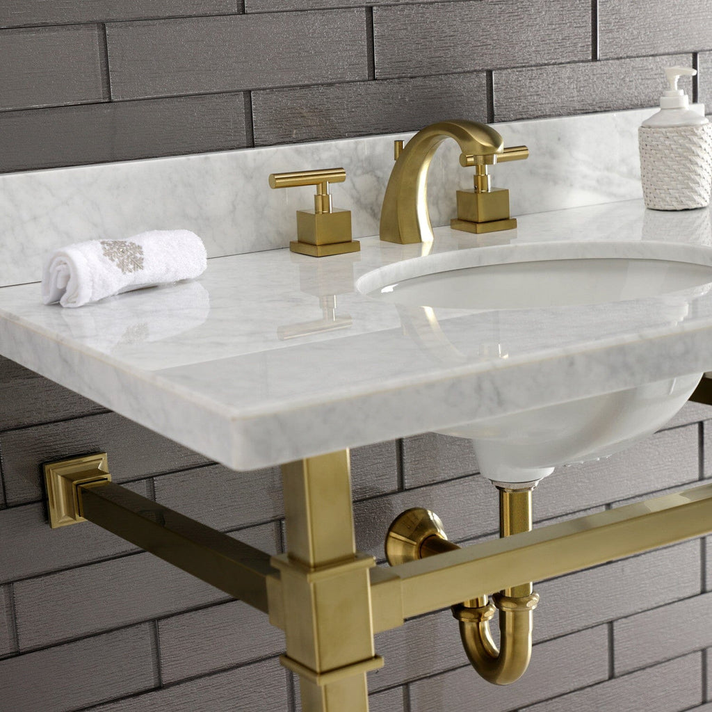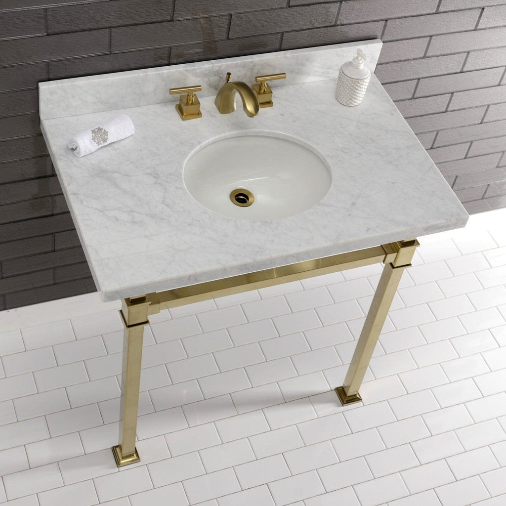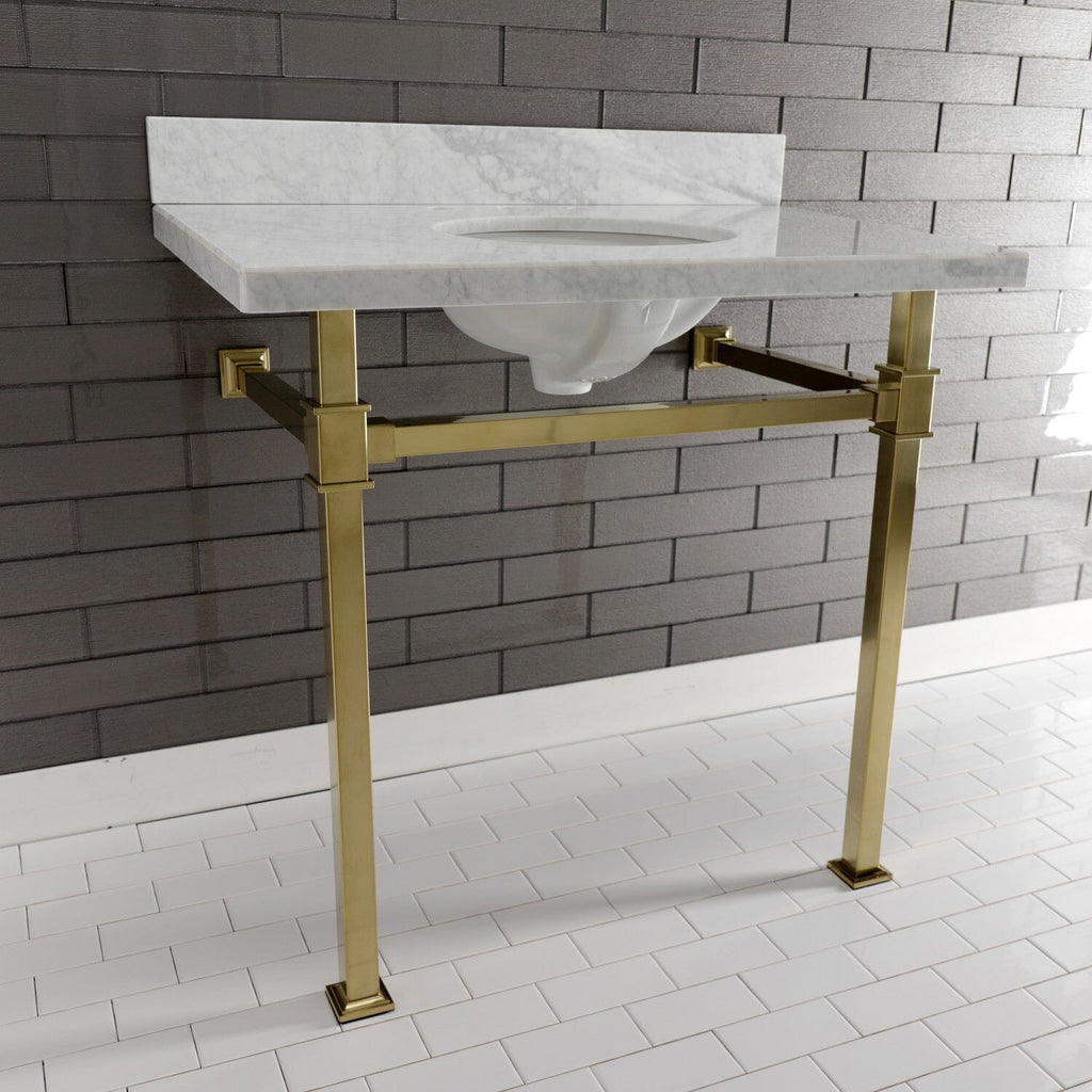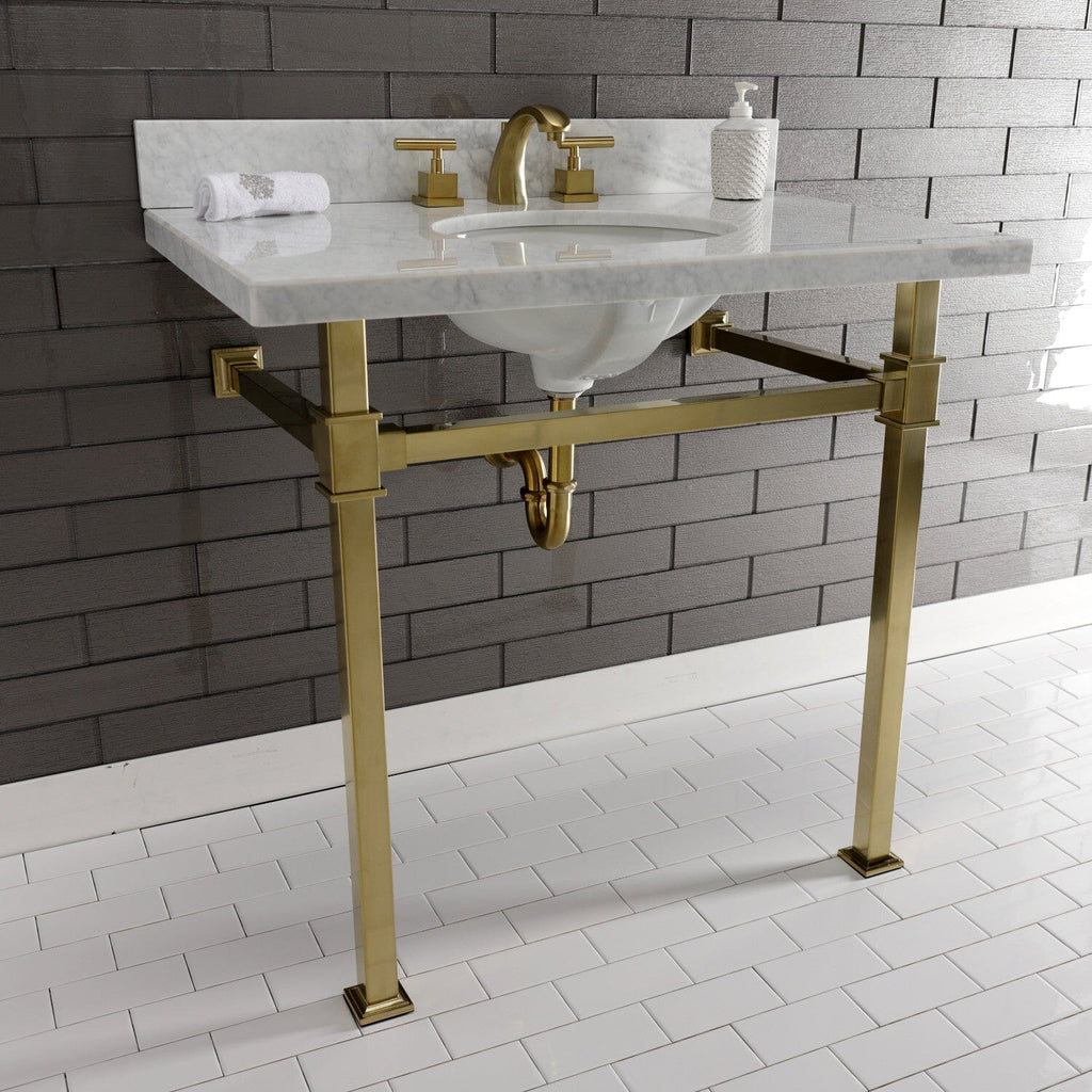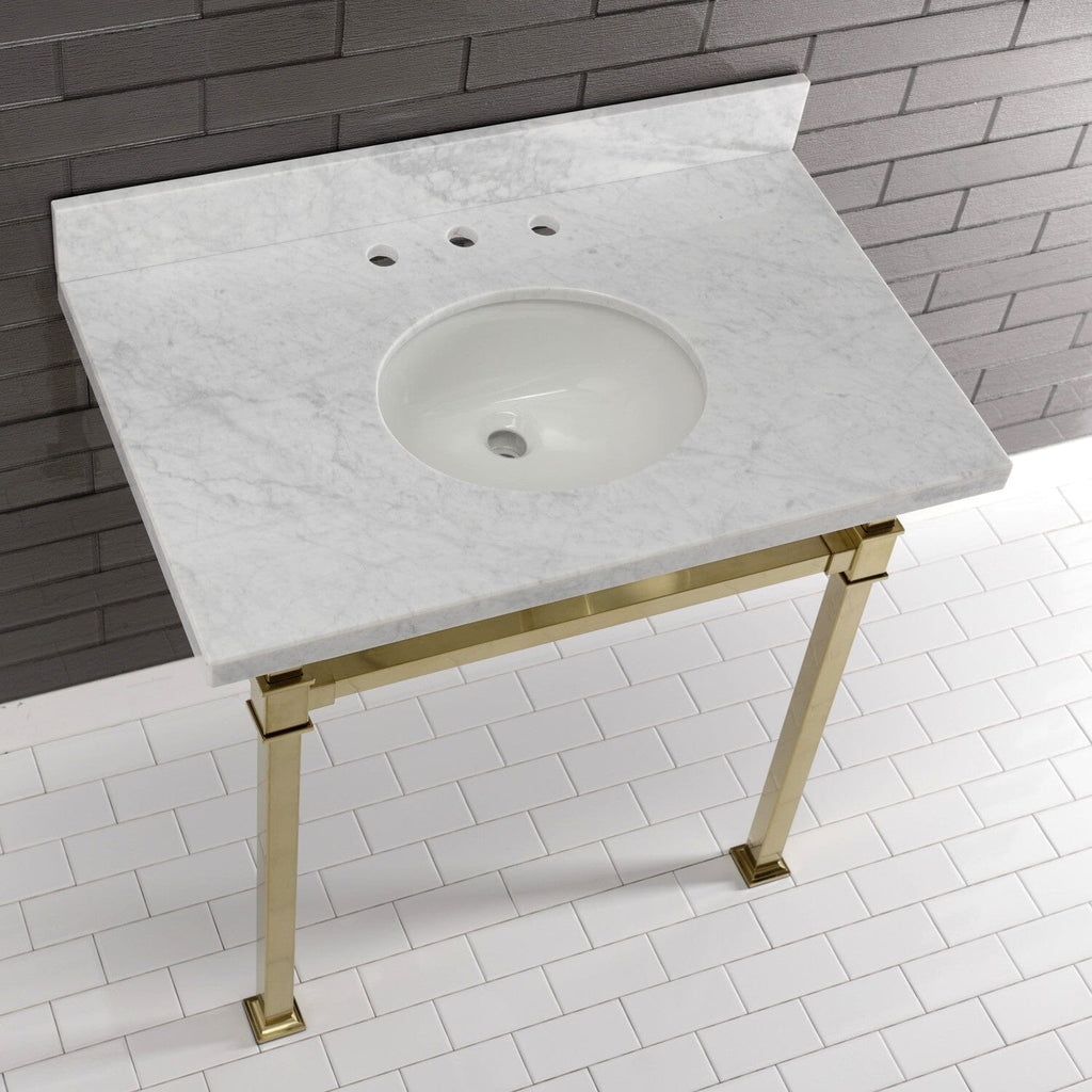 Monarch 36-Inch Carrara Marble Console Sink with Stainless Steel Legs (8-Inch, 3-Hole)