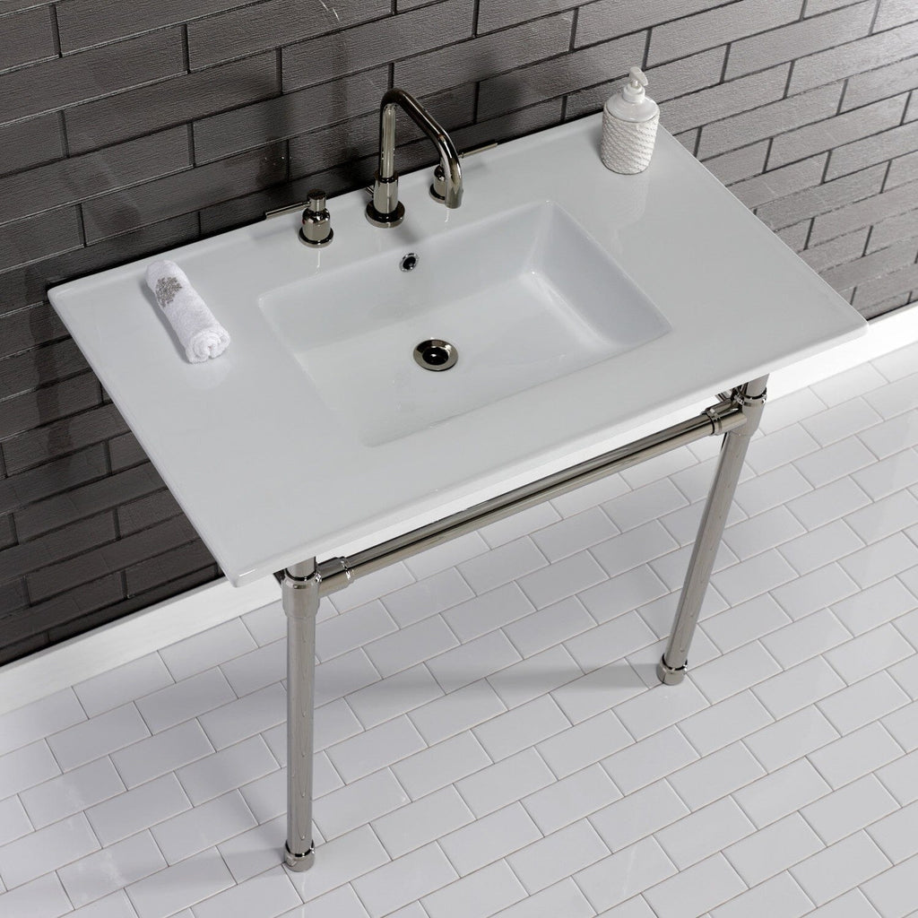 Dreyfuss 37-Inch Ceramic Console Sink with Stainless Steel Legs (8-Inch, 3-Hole)