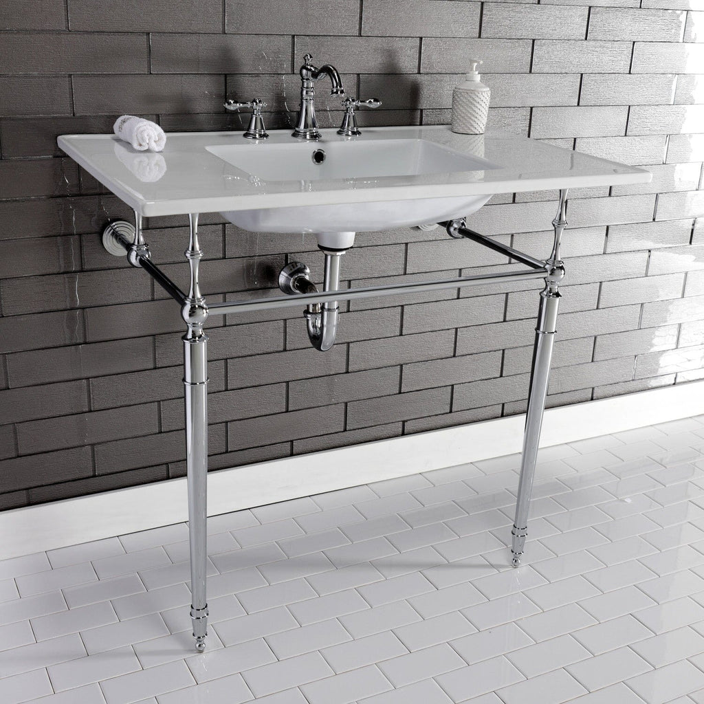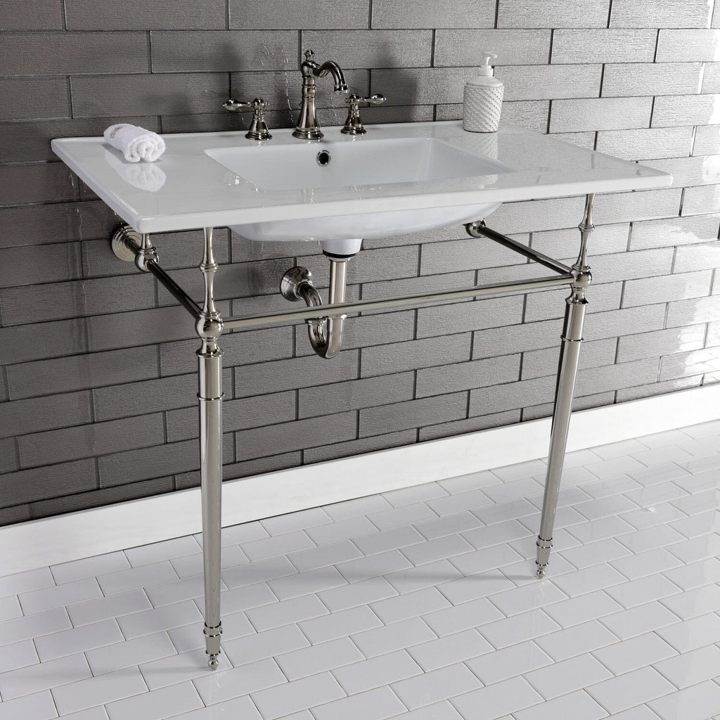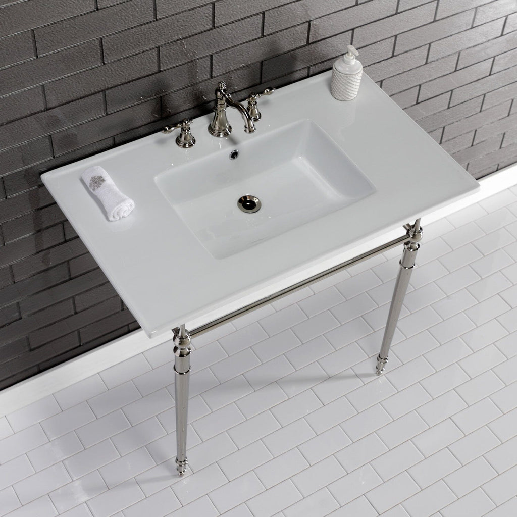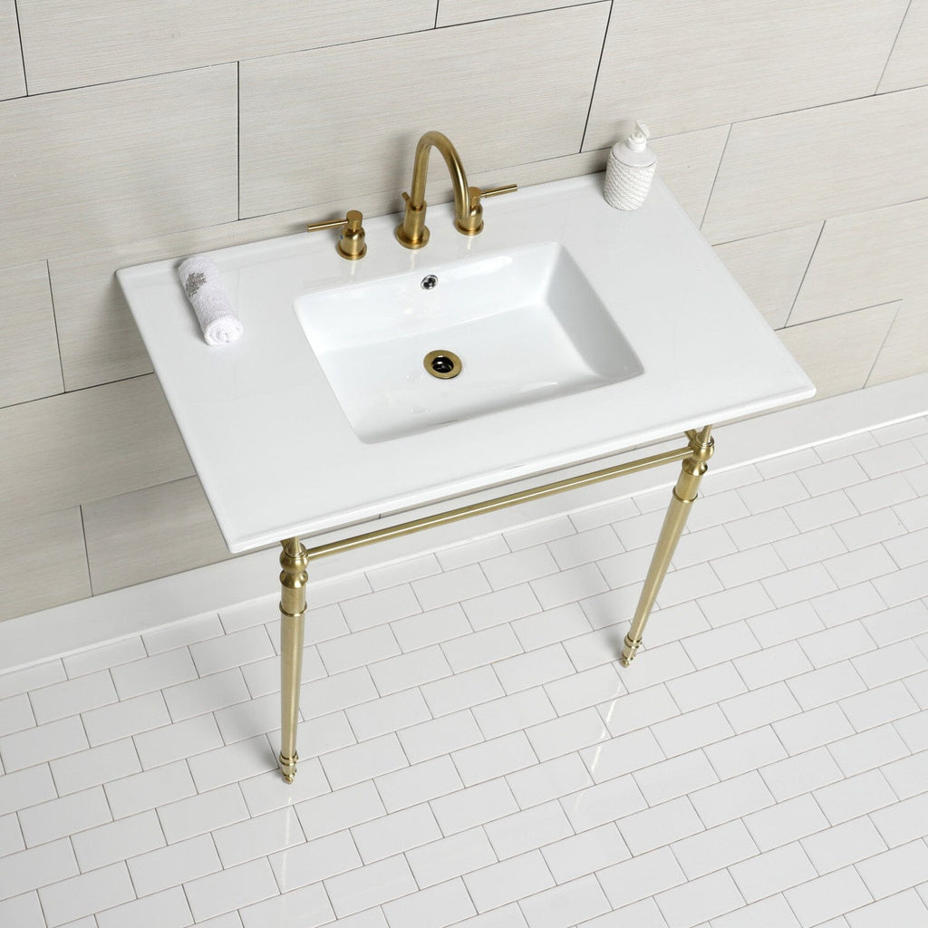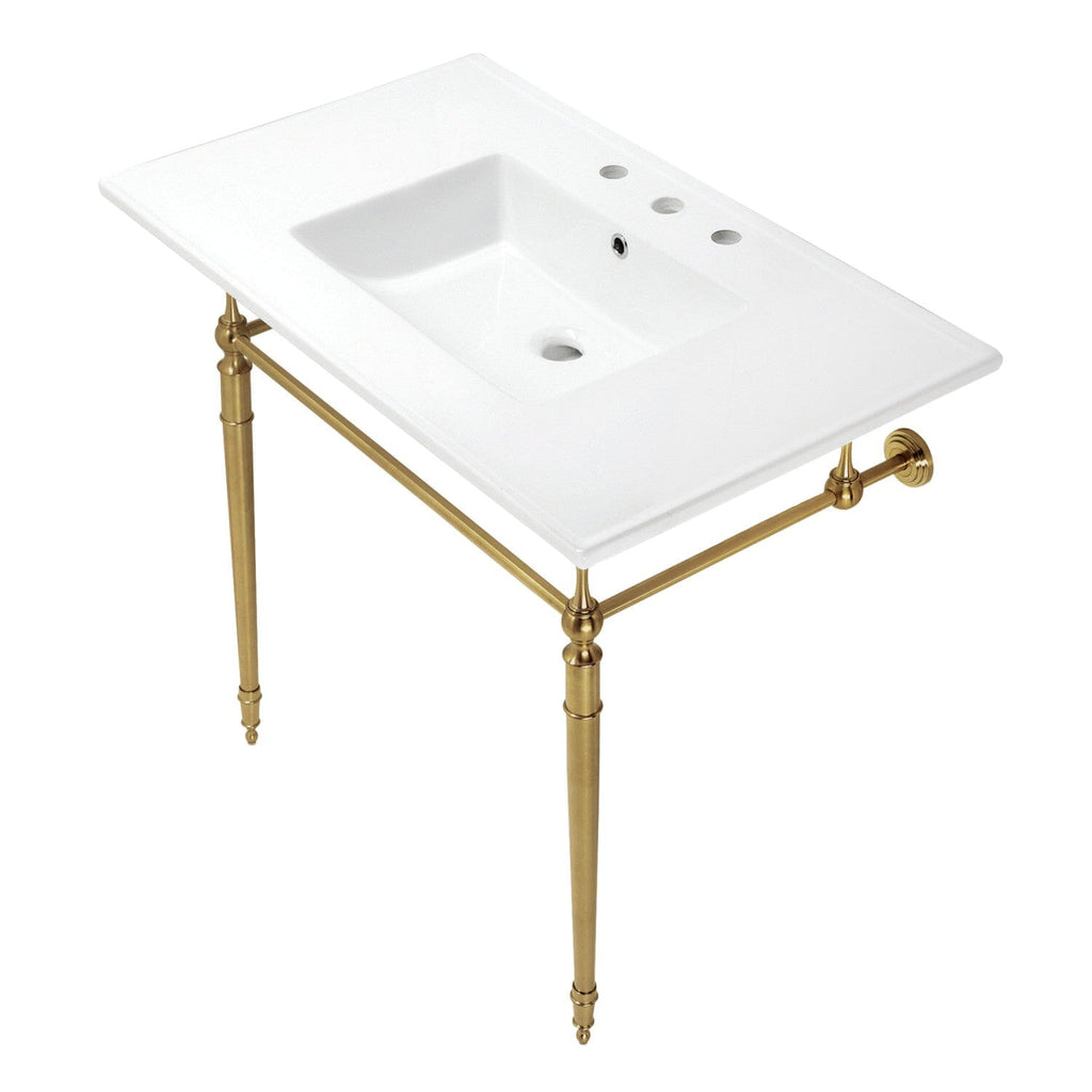 Edwardian 37-Inch Ceramic Console Sink with Brass Legs (8-Inch, 3-Hole)