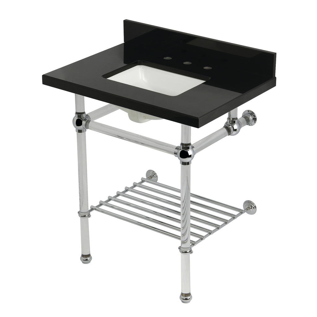 Templeton 30-Inch Black Granite Console Sink with Acrylic Legs and Shelf (8-Inch, 3-Hole)